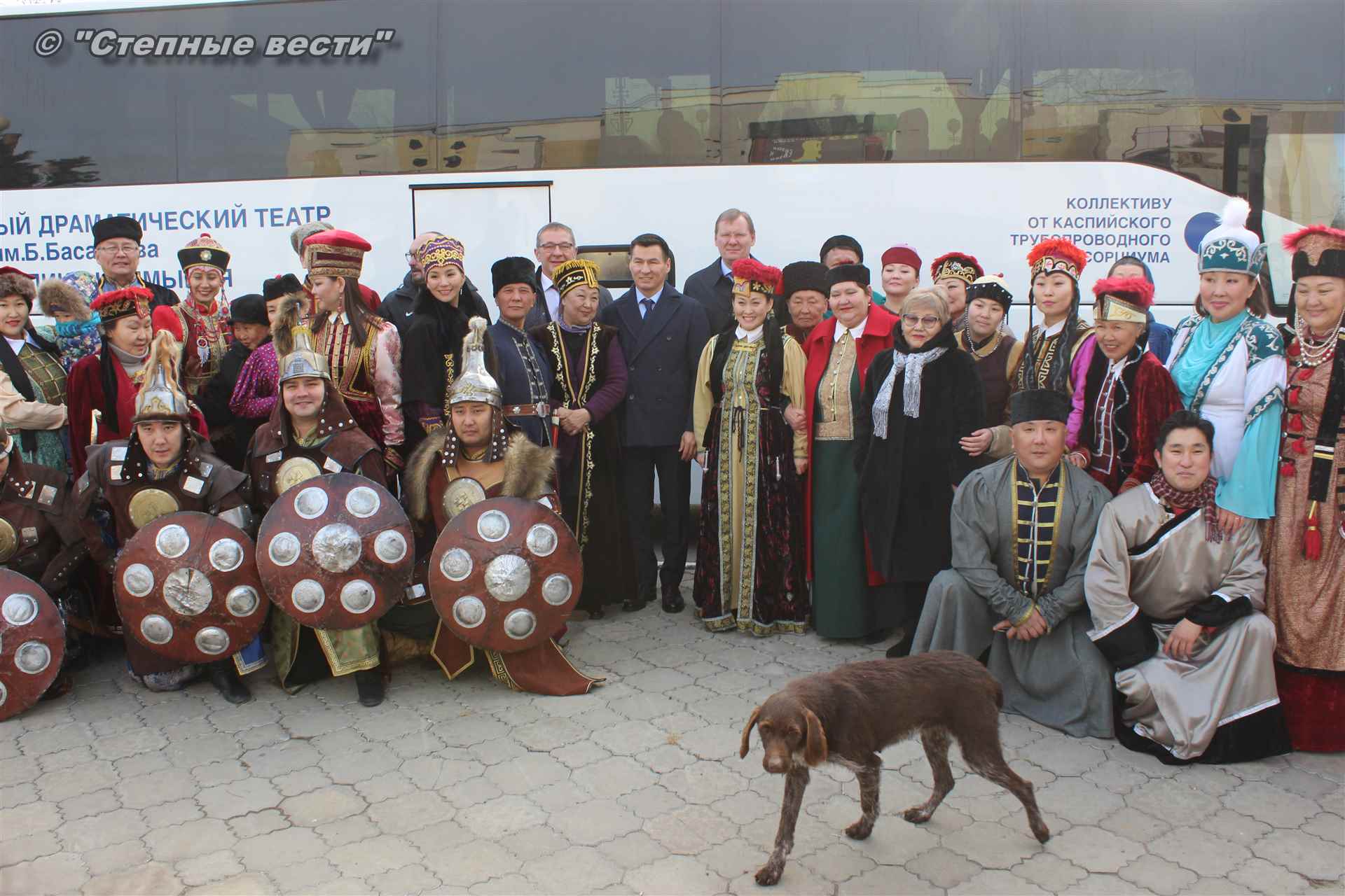 Праздник пришел на улицу Театральная, а точнее – к театралам Калмыкии. Без преувеличения, это так, ведь сегодня, наконец, сбылась давняя мечта коллектива Национального драматического театра имени Б. Басангова – артисты получили в свое распоряжение большой современный комфортабельный автобус, на котором они смогут ездить на гастроли. Поистине новогодний и щедрый, от души, подарок им сделал Каспийский Трубопроводный Консорциум.