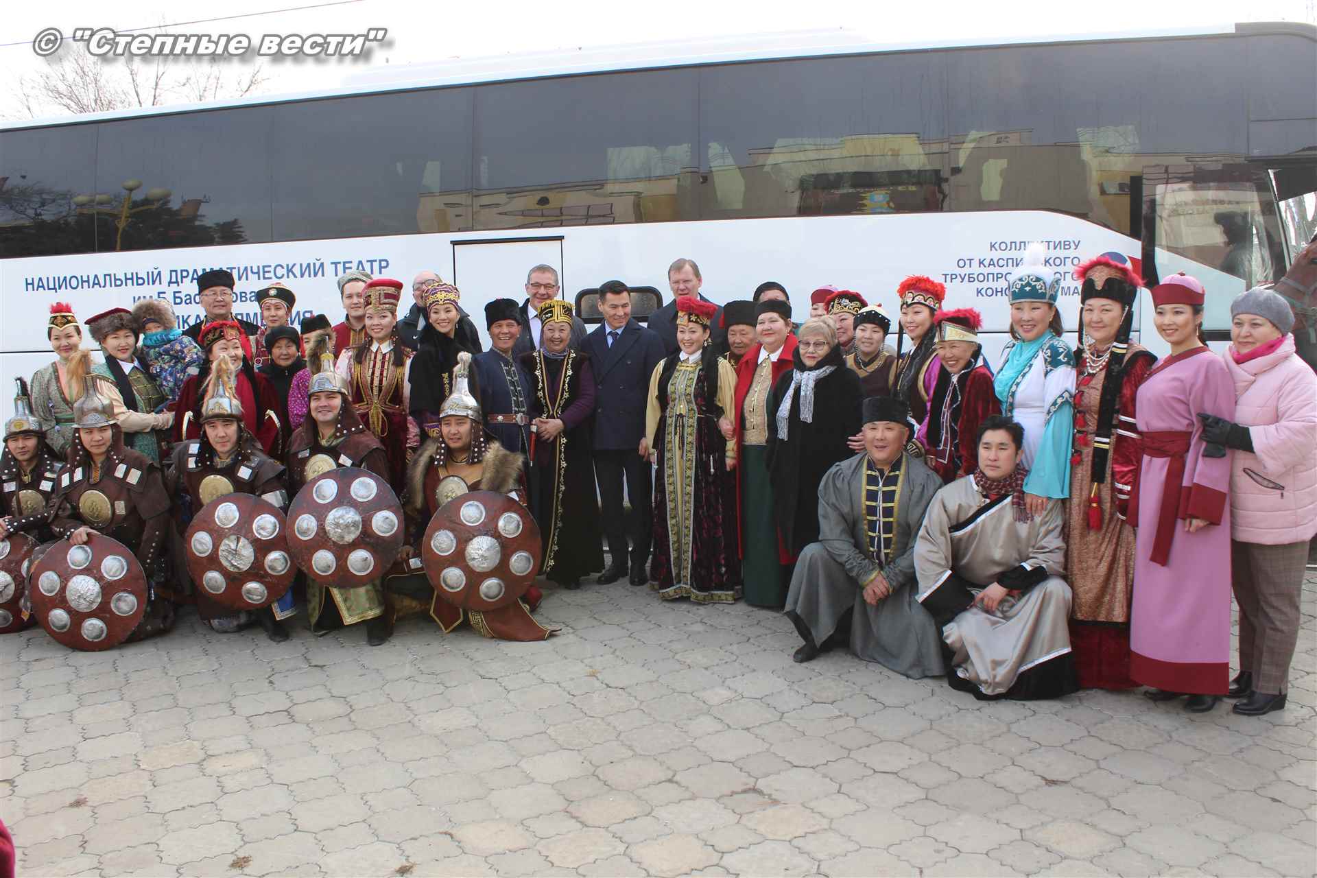 Как отметил в своем поздравительном выступлении Глава Калмыкии Бату Хасиков, всегда здорово, когда люди делятся добром. «Мне приятно, что наши друзья и партнеры – Каспийский Трубопроводный Консорциум — делятся с республикой добром, благодаря своим  возможностям вносят свою лепту в развитие материально-технической базы учреждений социальной сферы региона. В свою очередь, артисты будут делиться со зрителями нашей национальной культурой. Вы часто посещаете нашу глубинку, другие города России со своими театральными постановками. Так пусть этот автобус всегда ездит по белой дороге, а вы – доставляли радость людям!» – выразил пожелание руководитель республики.