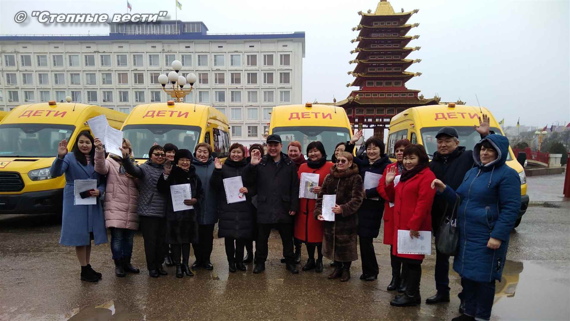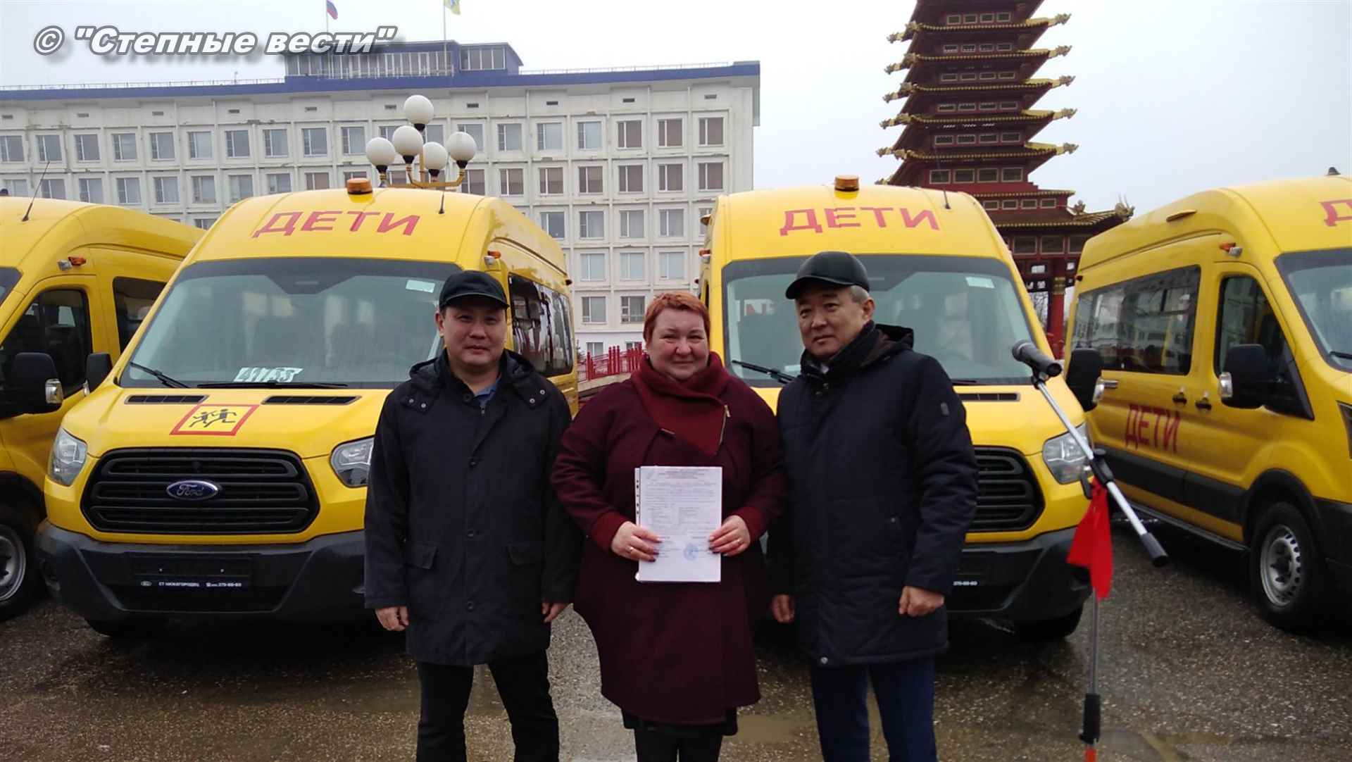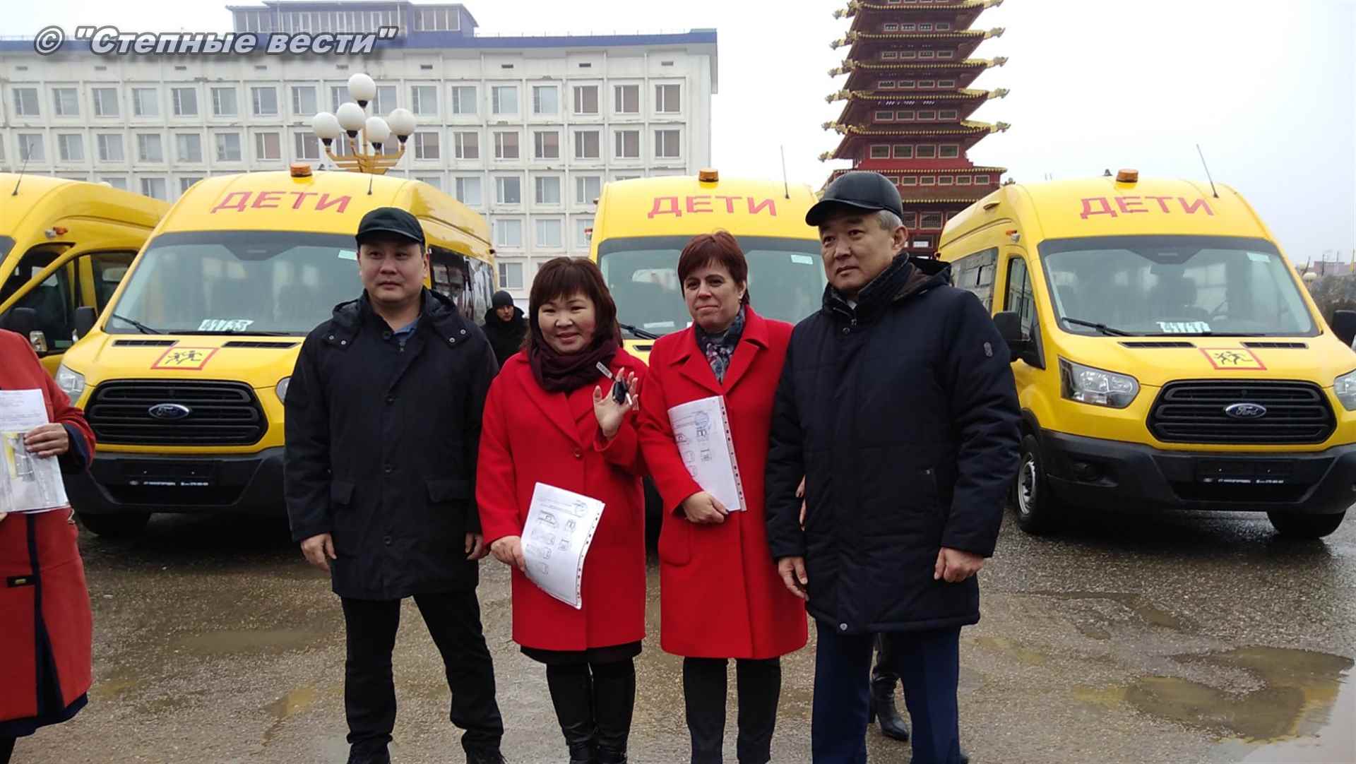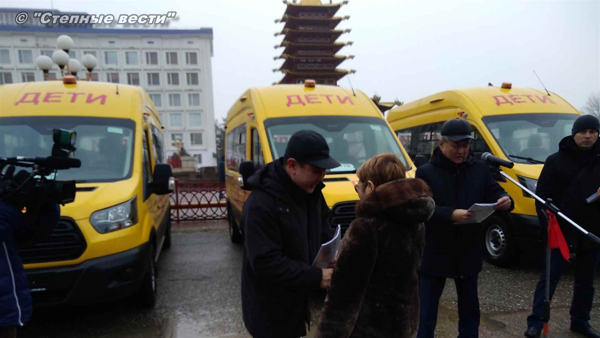 Ключи от новых машин для учеников из его рук получили руководители Хулхутинской, Ульяновской, Веселовской, Кегультинской, Оргакинской, Шарнутовской, Тундутовской, Ханатинской, Татальской, Иджилской, Воробьевской, Партизанской, Ики-Чоносовской, Нарын-Худукской, Привольненской школ, а также Матросовской школы-интерната.