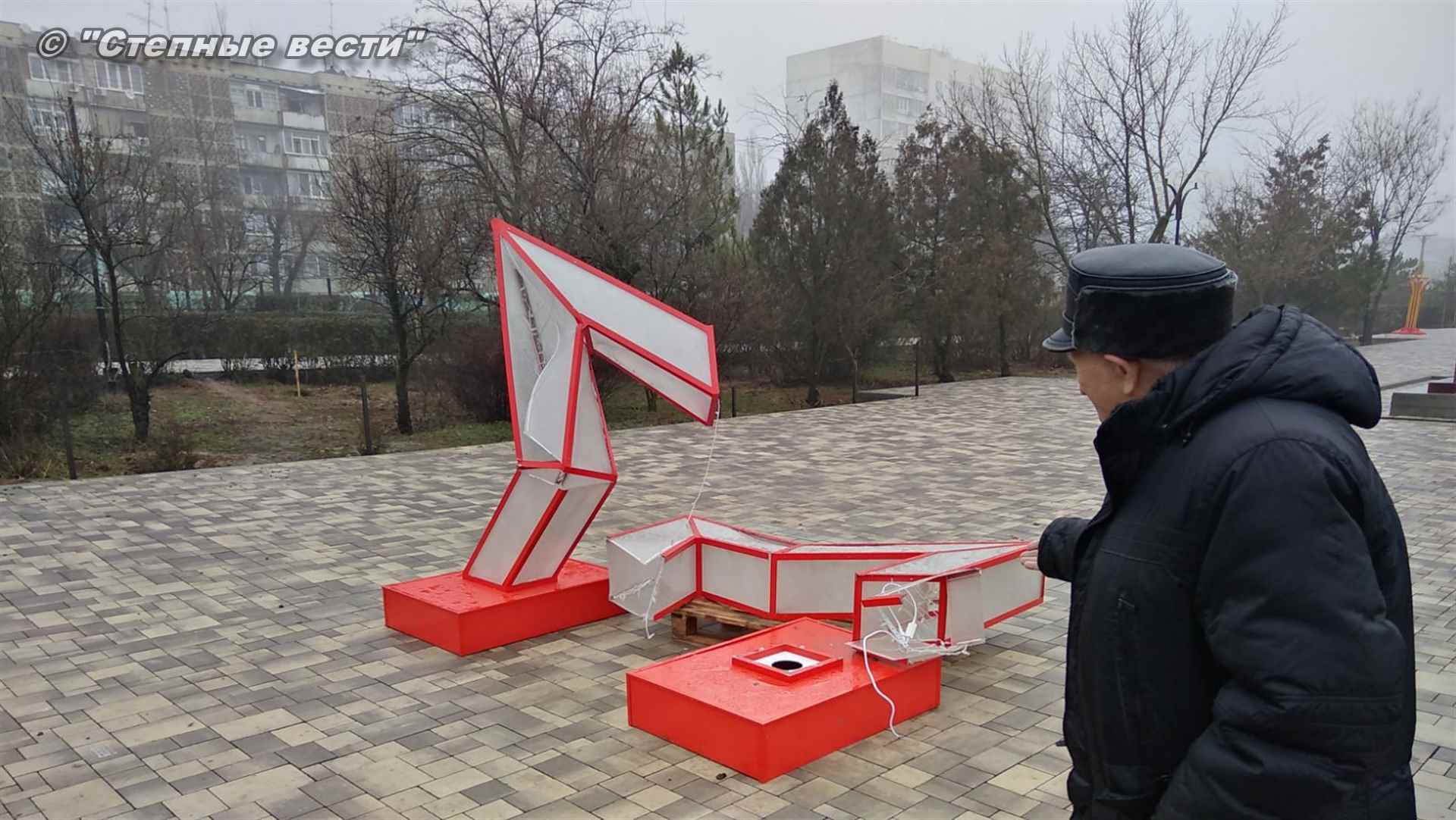 Инсталляцию установили неделю назад, в парке полным ходом идут работы по благоустройству, чтобы успеть завершить объект в срок. Неужели противникам Димы Трапезникова и, соответственно, моим, пришло такое в голову, чтобы навредить нам? Так вот, я хочу сказать, что те, кто это сделал, карму себе однозначно испортили, тем более в преддверии калмыцкого нового года Зул. Как у вас могла подняться рука на символ святой Победы?