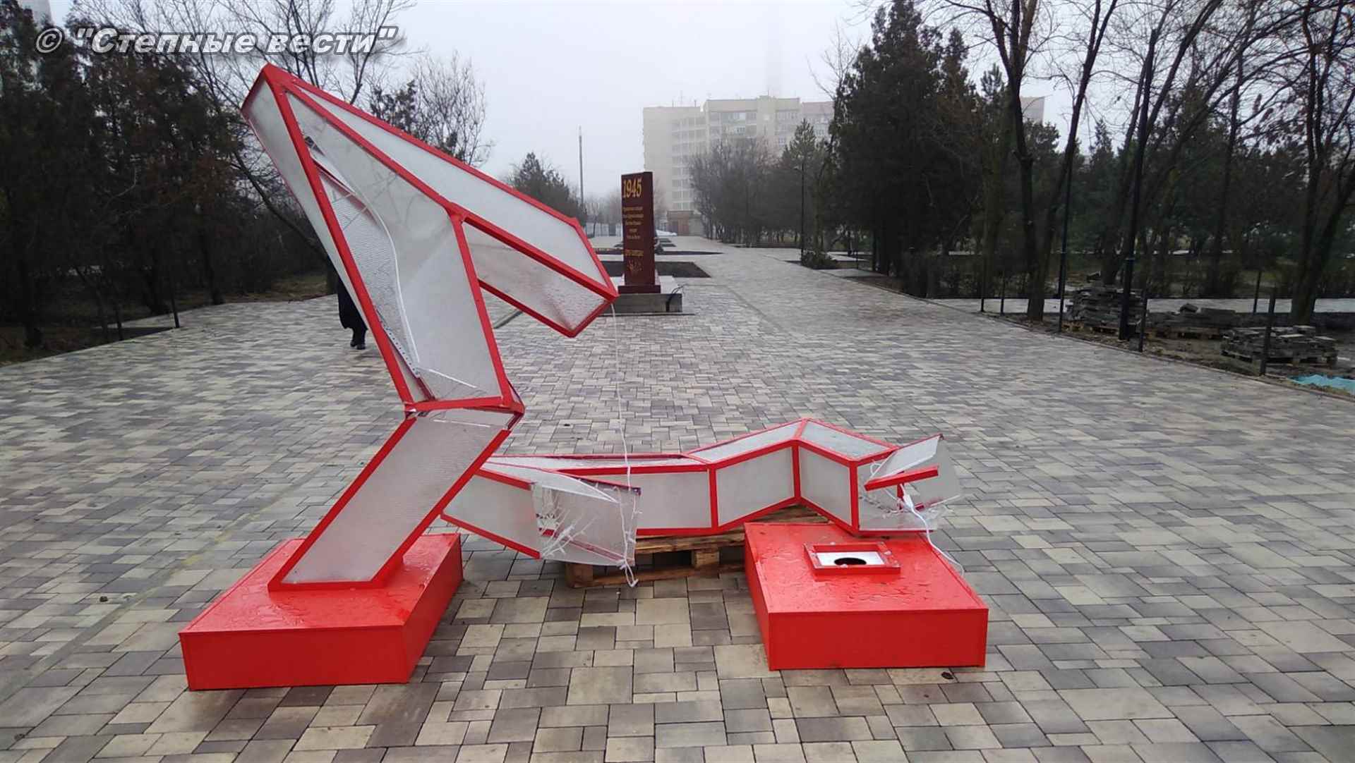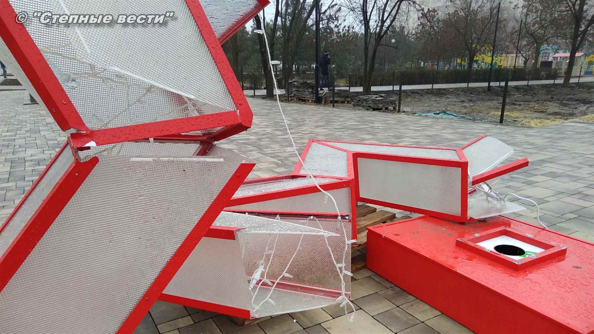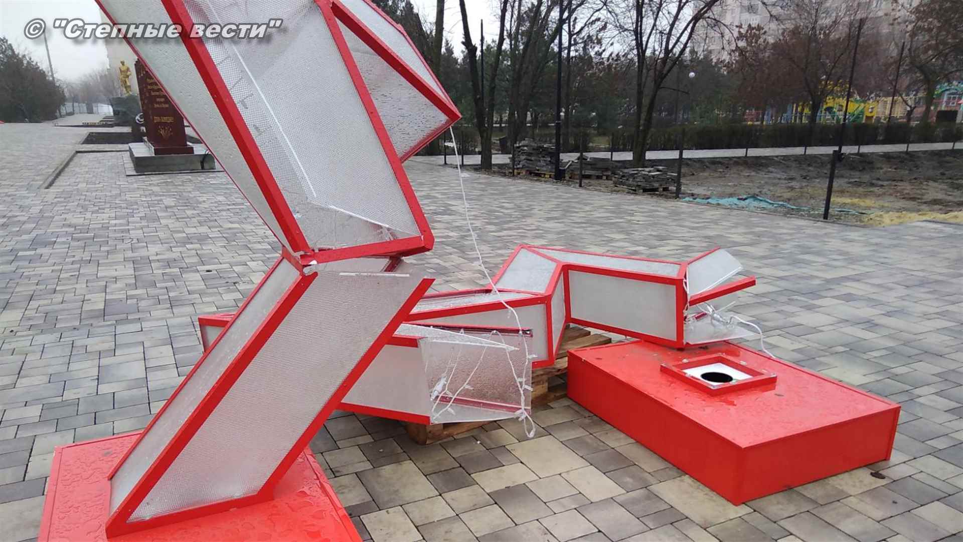 В парке Победы в Элисте, где в настоящее время завершаются работы в рамках приоритетного проекта «Формирование комфортной городской среды», ночью разрушили малую архитектурную форму в виде звезды. Всего их в парке три.