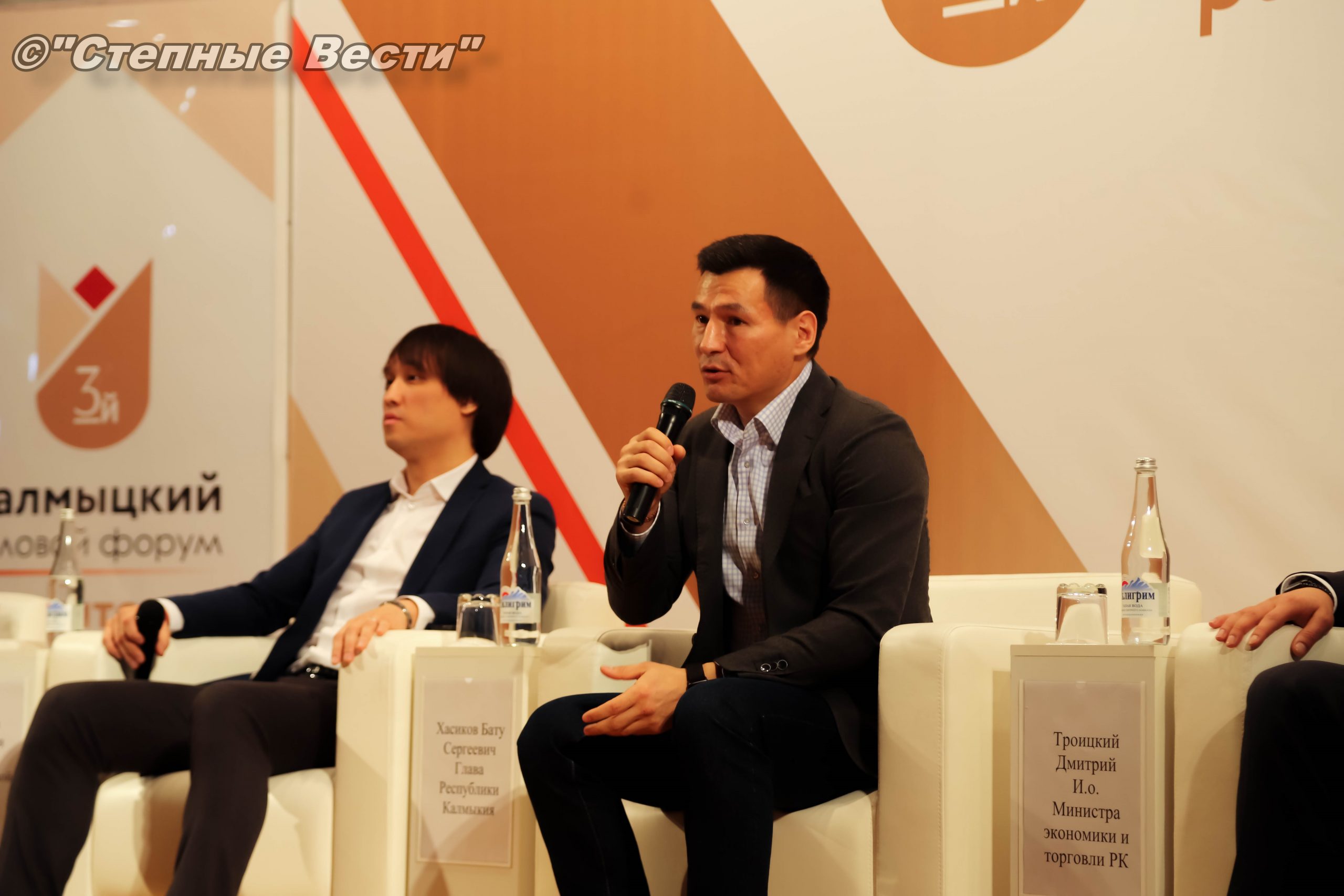 В своем приветственном выступлении на панельной сессии форума Глава Калмыкии Бату Хасиков отметил, что предприниматели – основной драйвер экономического развития любого региона. Поэтому дискуссии в кругу чиновников от экономики и финансов Калмыкии, представителей банковской сферы, крупных федеральных бизнес-структур и самых активных представителей калмыцкого делового сообщества будут взаимно полезными для всех сторон.
