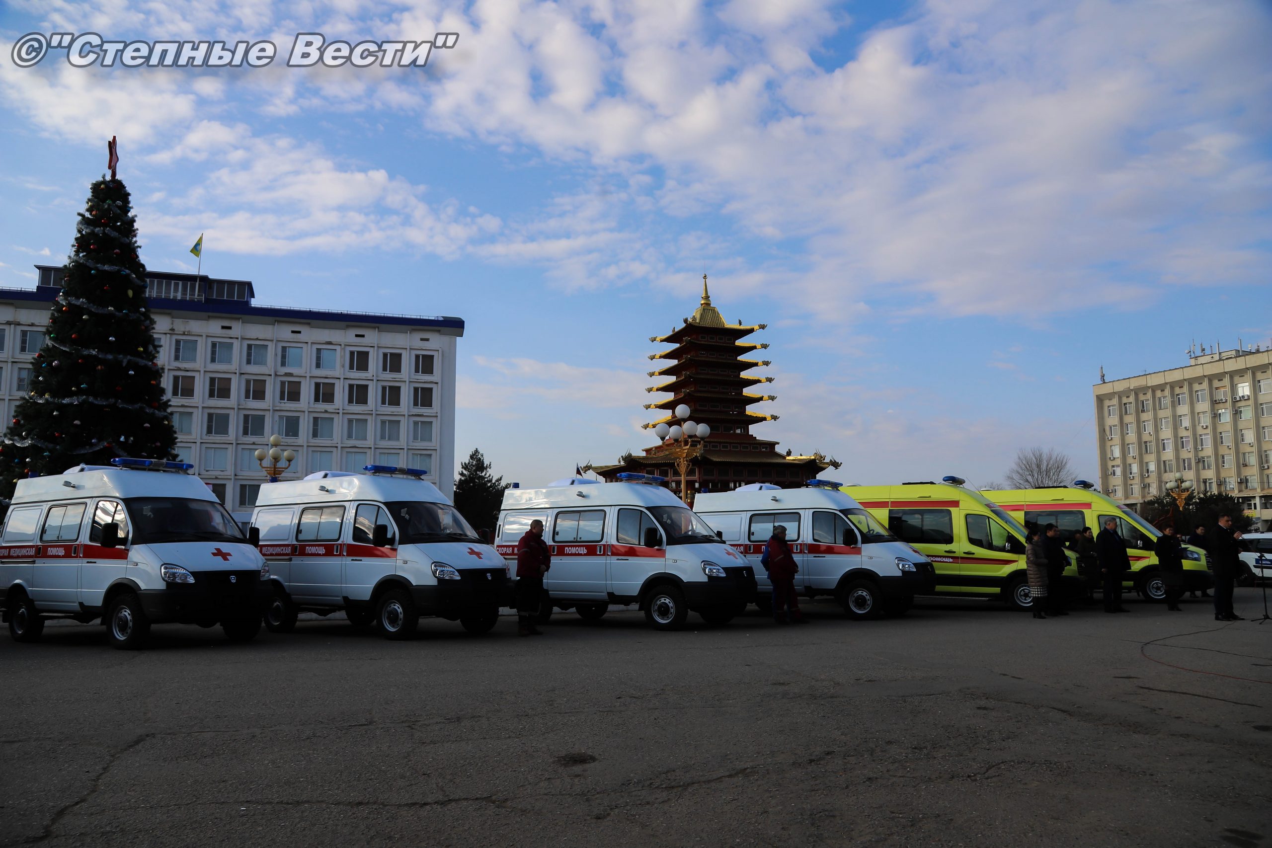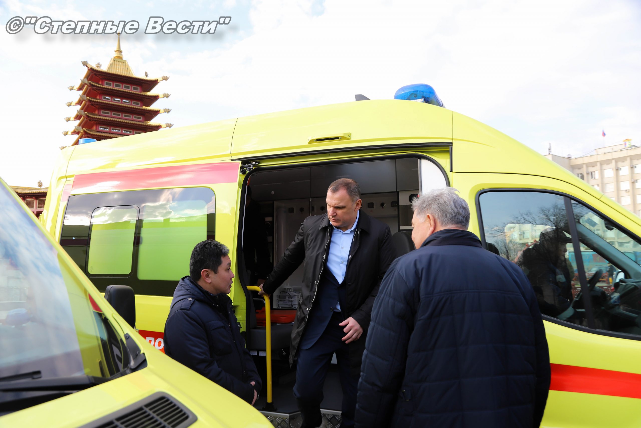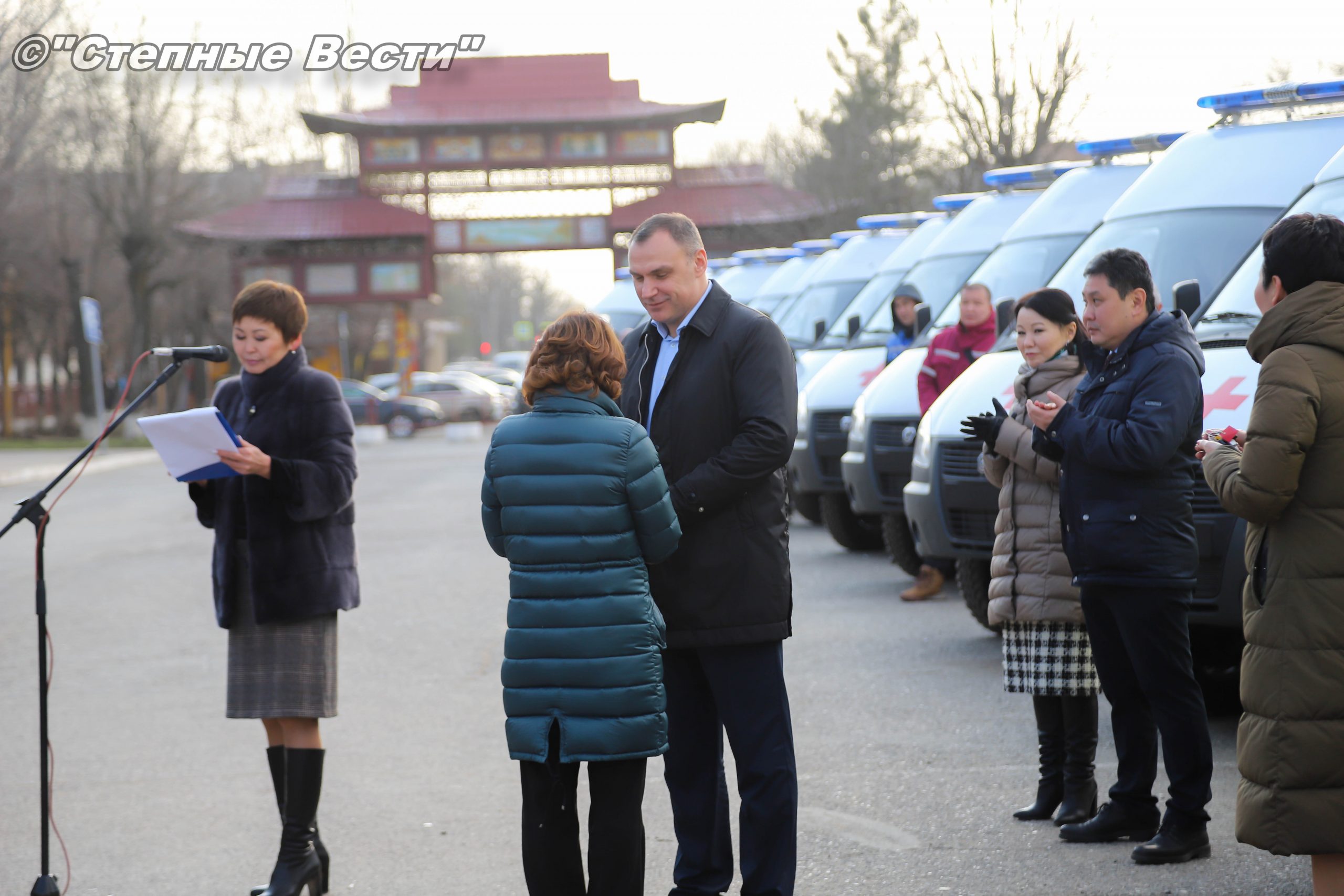 В Элисте, на площади «Пагода семи дней», состоялась церемония вручения ключей от специализированного автотранспорта, предназначенного для учреждений здравоохранения и социальной защиты населения.