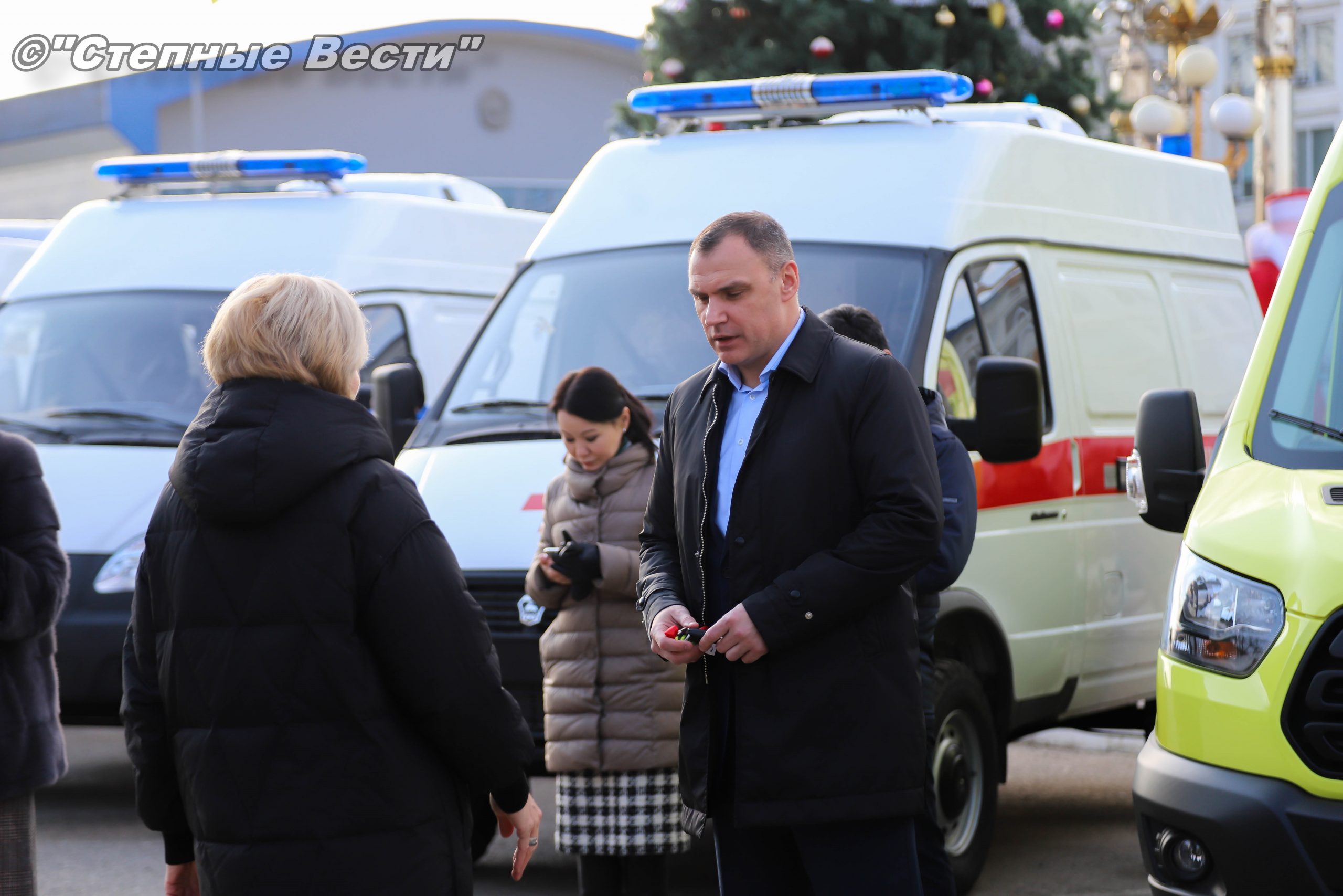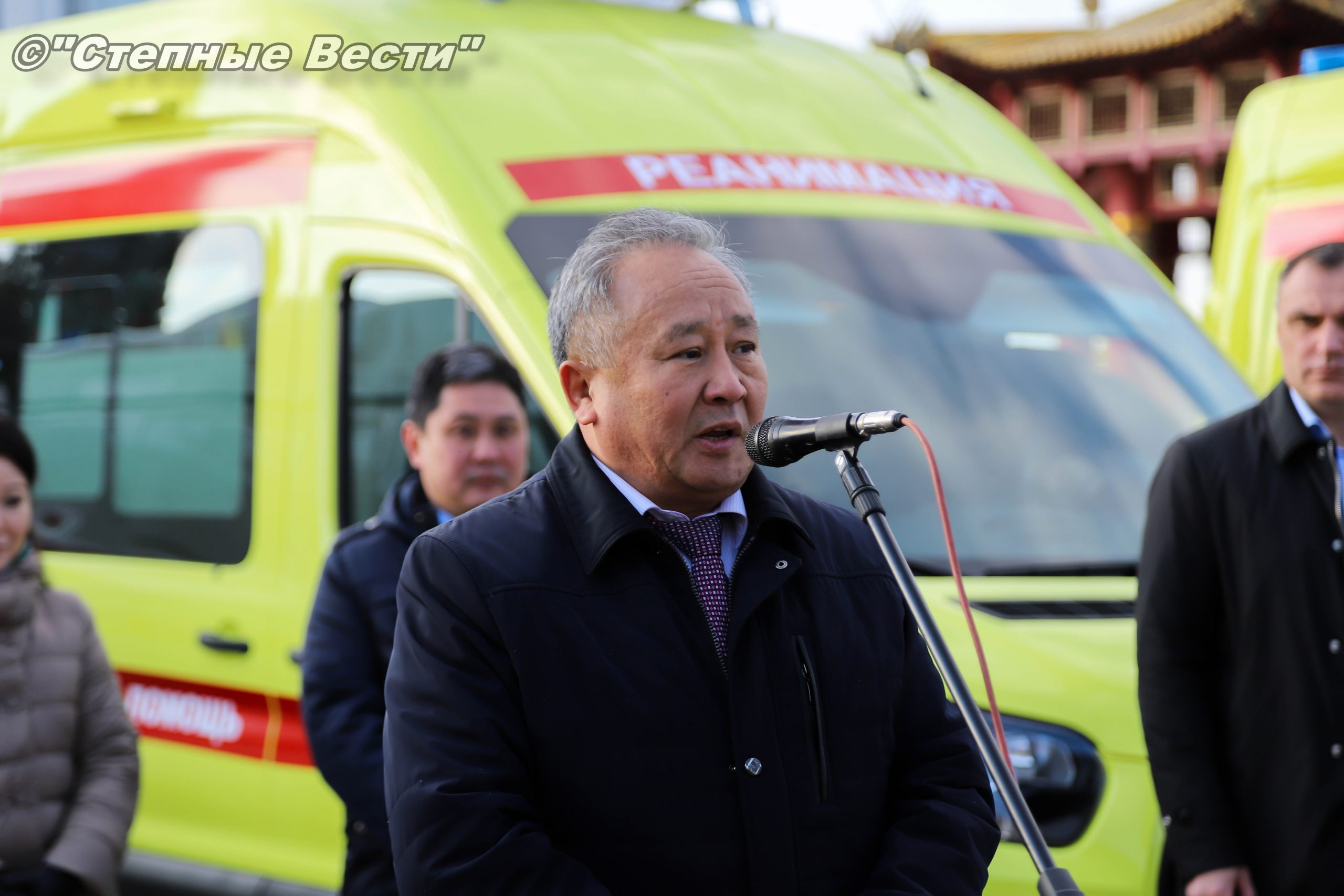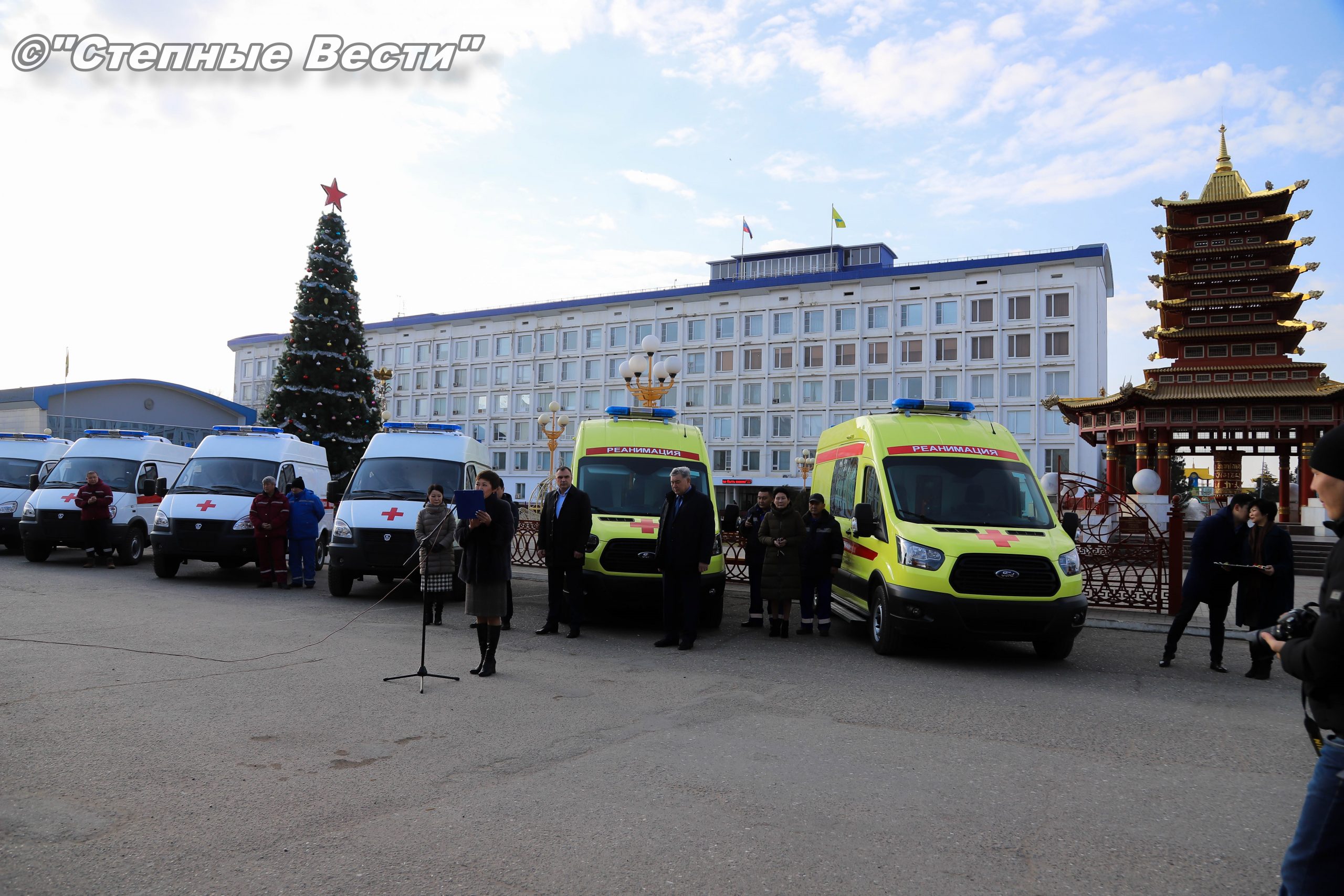 В Элисте, на площади «Пагода семи дней», состоялась церемония вручения ключей от специализированного автотранспорта, предназначенного для учреждений здравоохранения и социальной защиты населения.