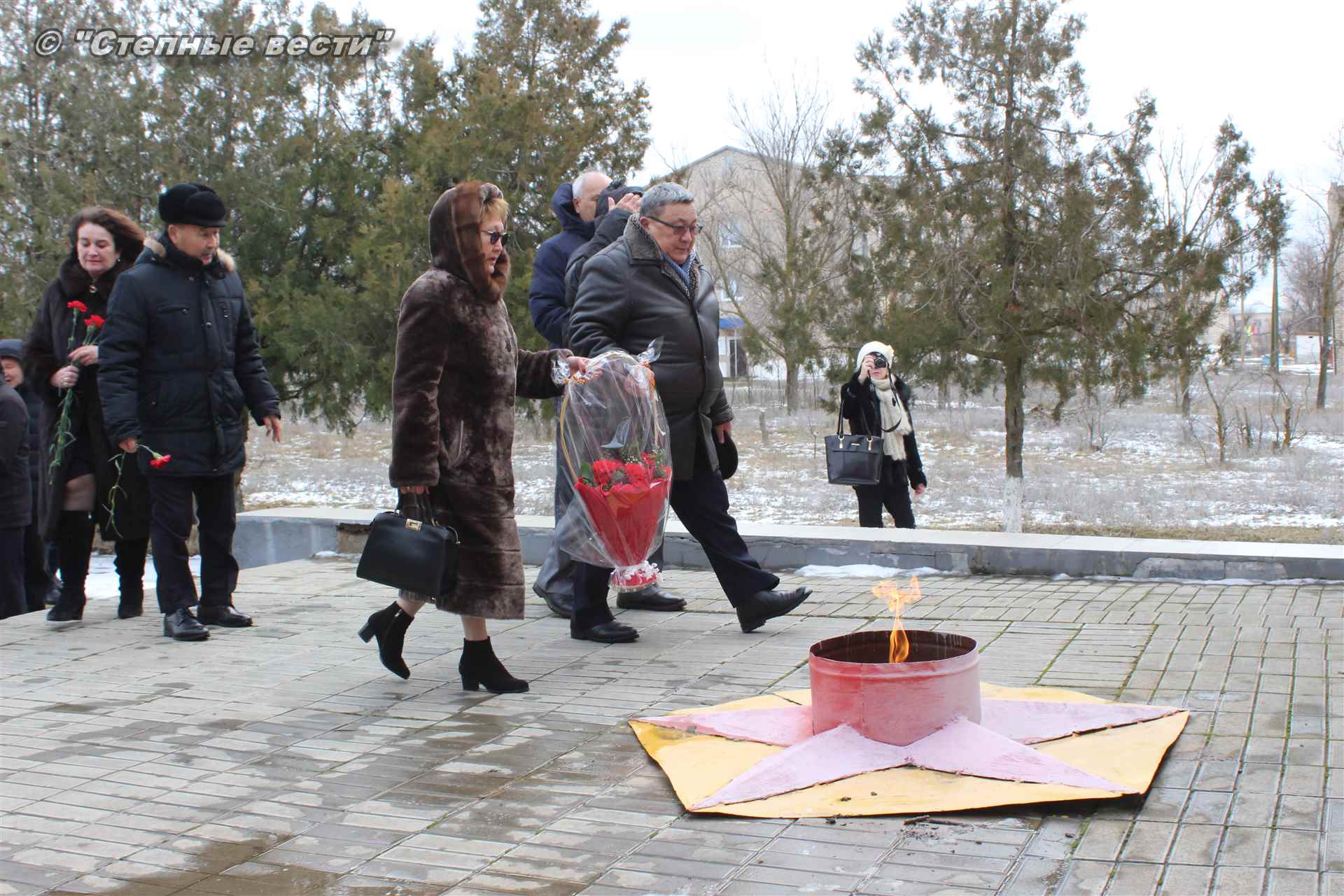 Программа поездки началась с возложения цветов к памятнику Героя Советского Союза Б.Б.Городовикову и мемориалу памяти погибших в Великой Отечественной войне 1941-1945 годов. После чего гости приняли участие в торжественном собрании, посвященном празднованию 55-летнего юбилея Ики-Бурульского района.