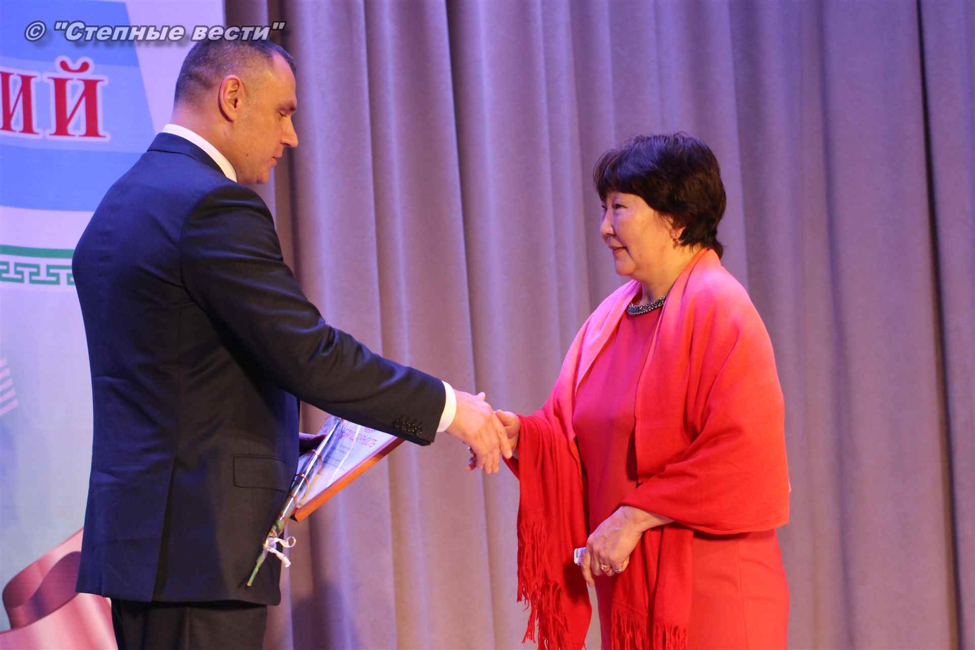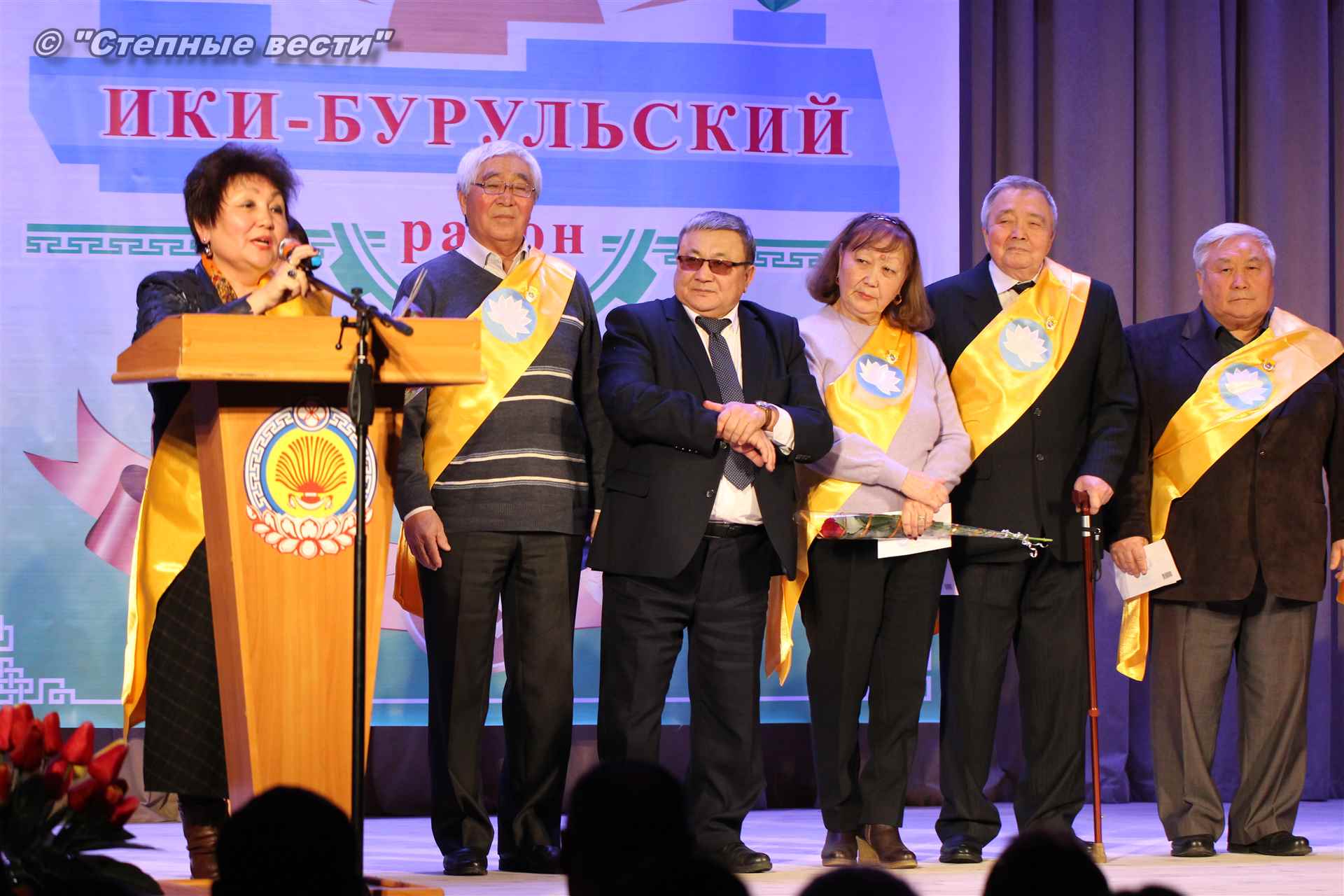 В продолжение концертной программы В.Маслов за многолетний добросовестный труд присвоил почетное звание «Почетный житель Ики-Бурульского района» директору МКОУ «Кевюдинская СОШ» Надежде Батыровой, ветерану сельскохозяйственной отрасли Батнасану Очирову, методисту Ики-Бурульской национальной районной библиотеки Галине Умкеевой, ветерану здравоохранения Анатолию Тямисову, ветерану сельскохозяйственной службы района Александру Абушинову, ветерану педагогического труда Валентине Витько, тележурналисту Розе Грицковой.