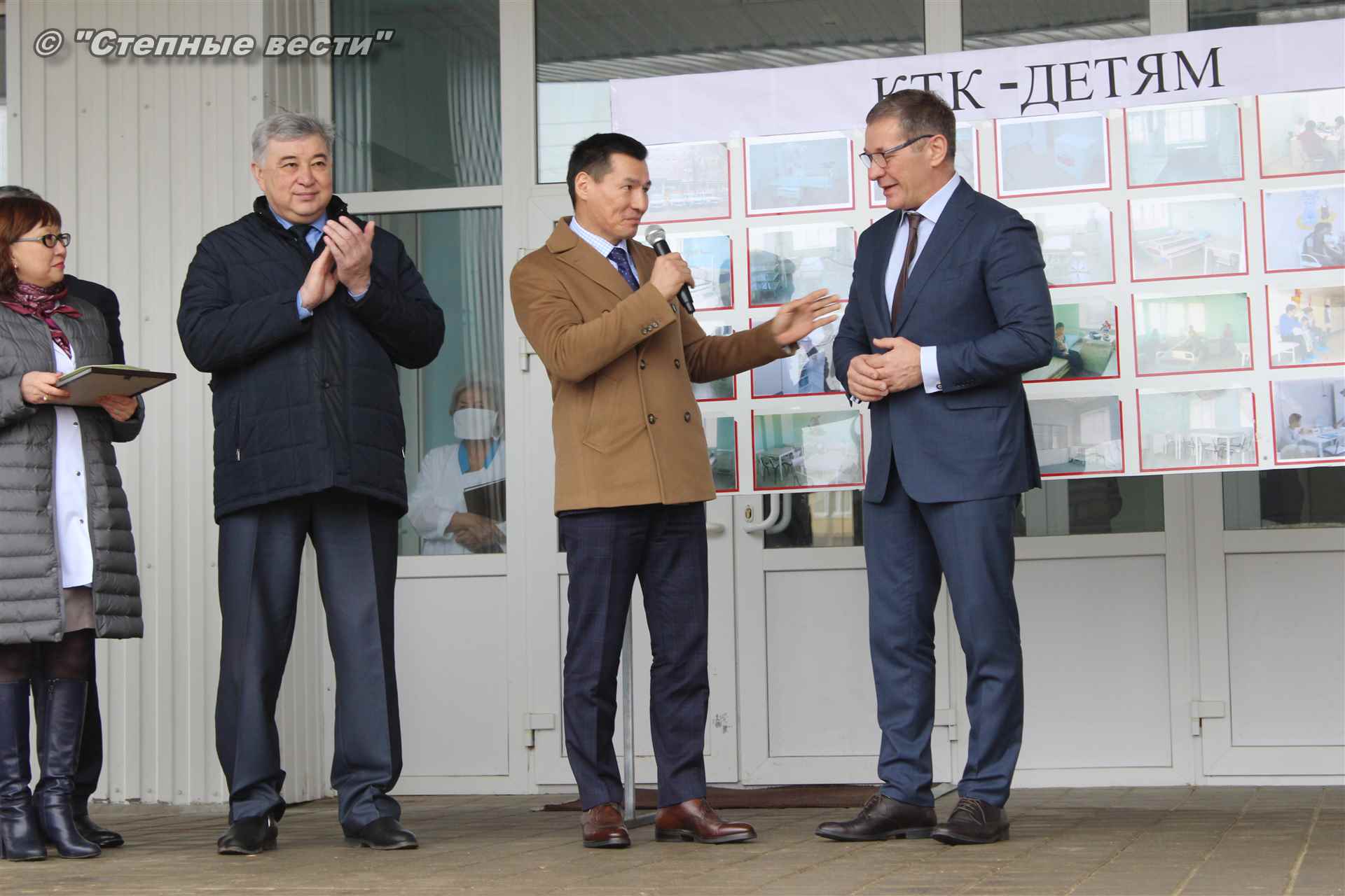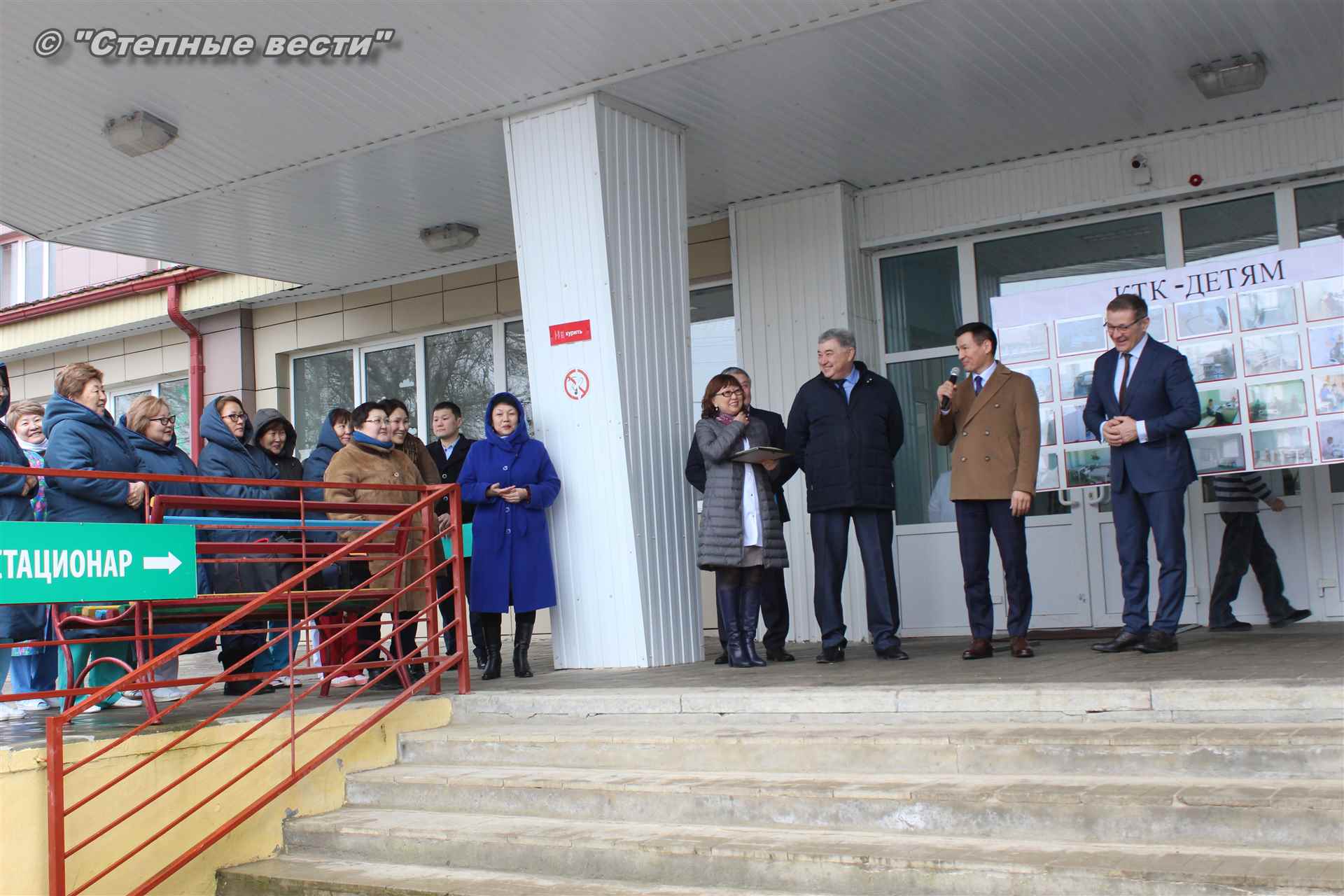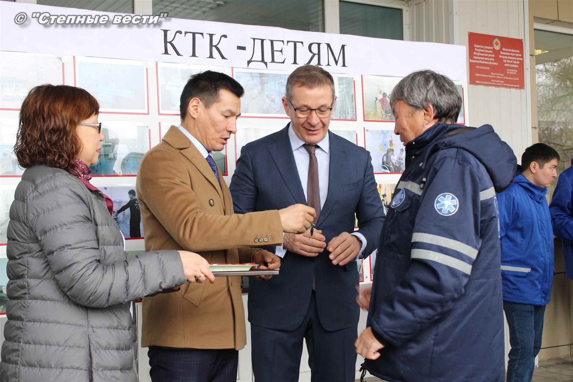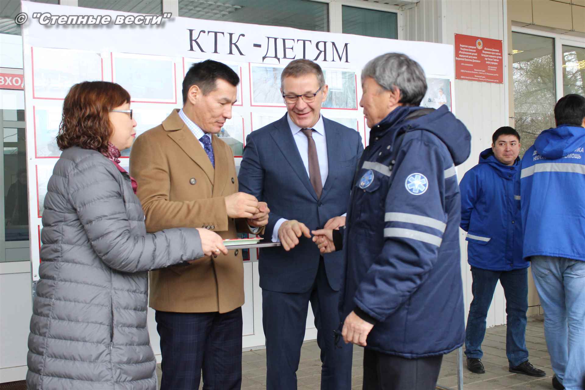В торжественном мероприятии, посвященном вручению долгожданных подарков КТК руководству и работникам больницы, приняли участите Глава Калмыкии Бату Хасиков, заместитель генерального директора КТК-Р по связям с Правительством РФ Михаил Гришанков, представитель консорциума по связям с Правительством РК Улюмджи Чиджиев, министр здравоохранения РК Юрий Кикенов и его первый заместитель Галина Динкиева.