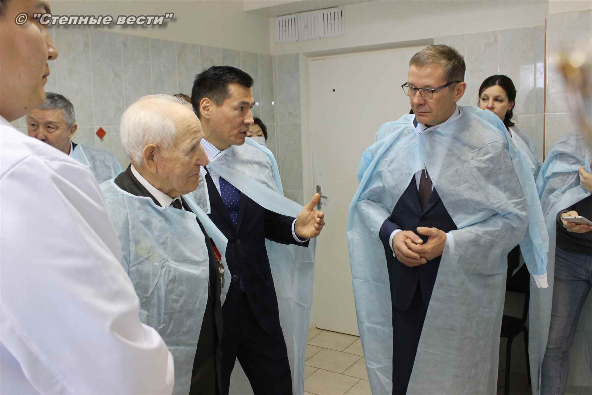 Почетным гостям показали современную технику, ответили на их вопросы, а также на вопросы одного из старейших жителей Элисты участника Великой Отечественной войны Петра Леонтьева, также побывавшего сегодня в госпитале.