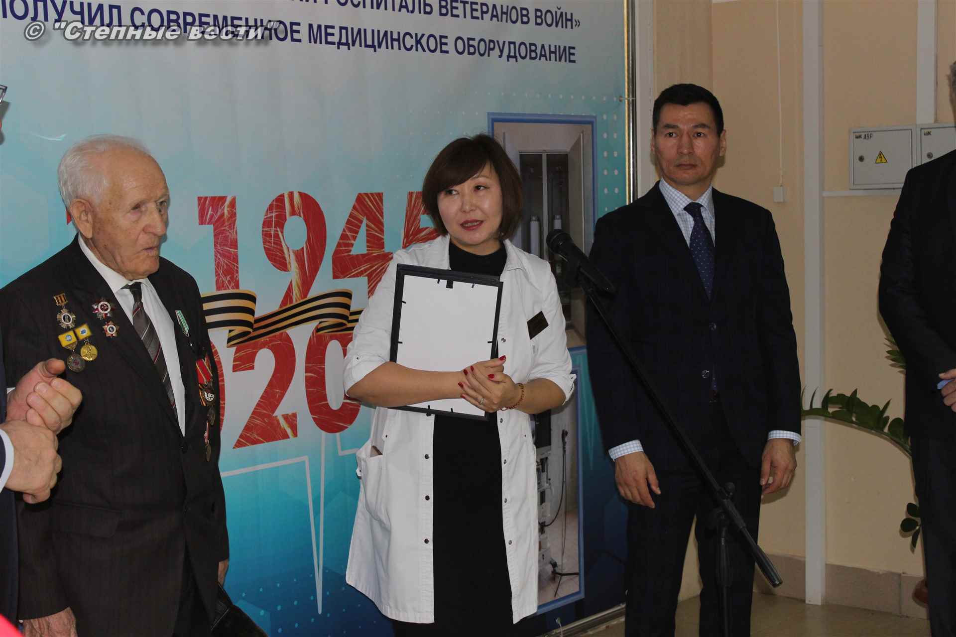 Надо отметить, что Петр Леонтьевич, нередко поддерживающий здесь здоровье и потому хорошо знакомый с сотрудниками, до начала мероприятия пообщался с медсестрами и по их просьбе сфотографировался с ними. Во время краткой беседы с Бату Сергеевичем рассказал о себе, недавней поездке в Волгоград на торжества в честь 77 годовщины победы в Сталинградской битве, где погиб его брат. В Волгограде фронтовик встретился с военным, служившим, как и Петр Леонтьевич, в прежние годы на территории Германии, и похвалился: руководство республики нас, ветеранов, не забывает, заботится.