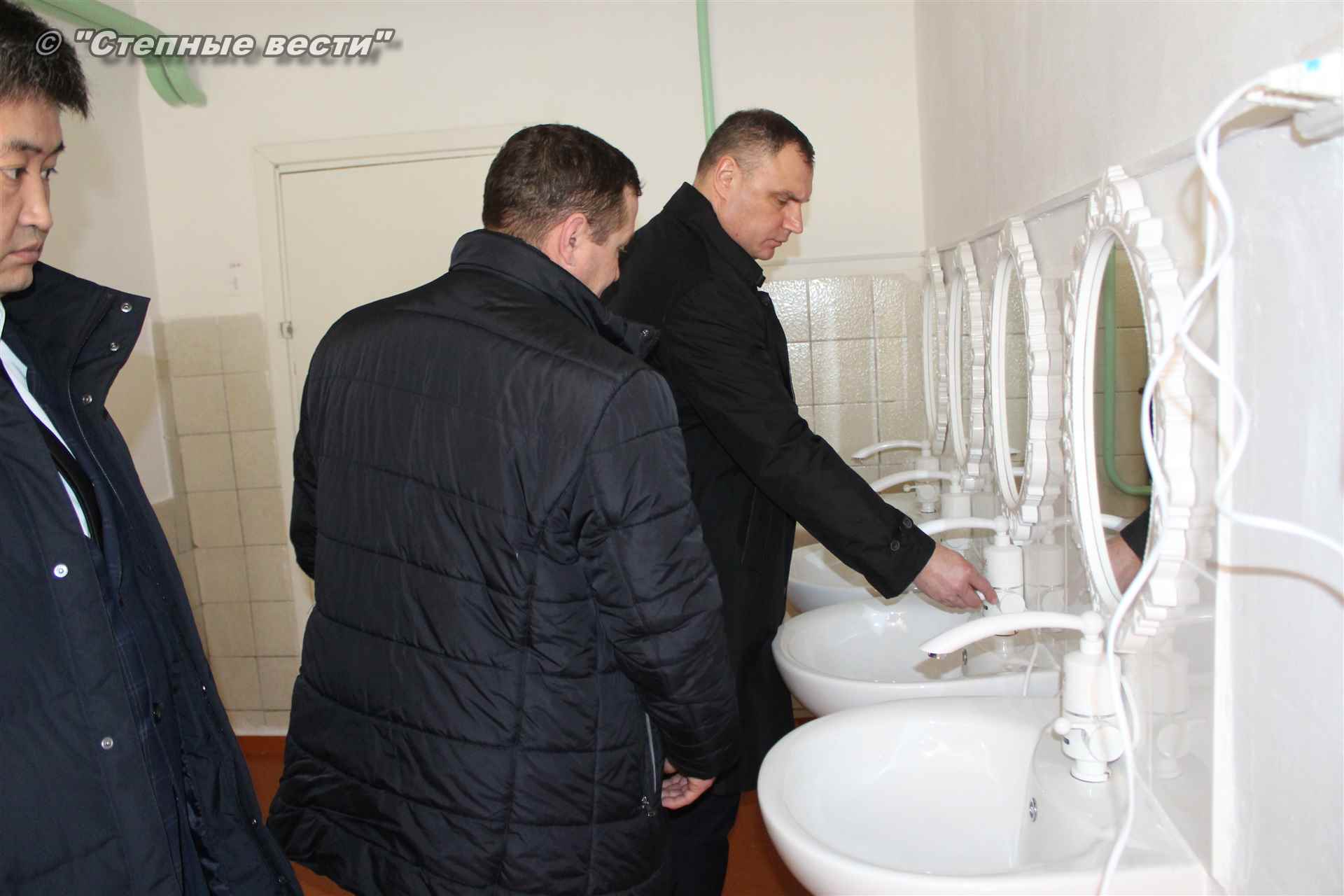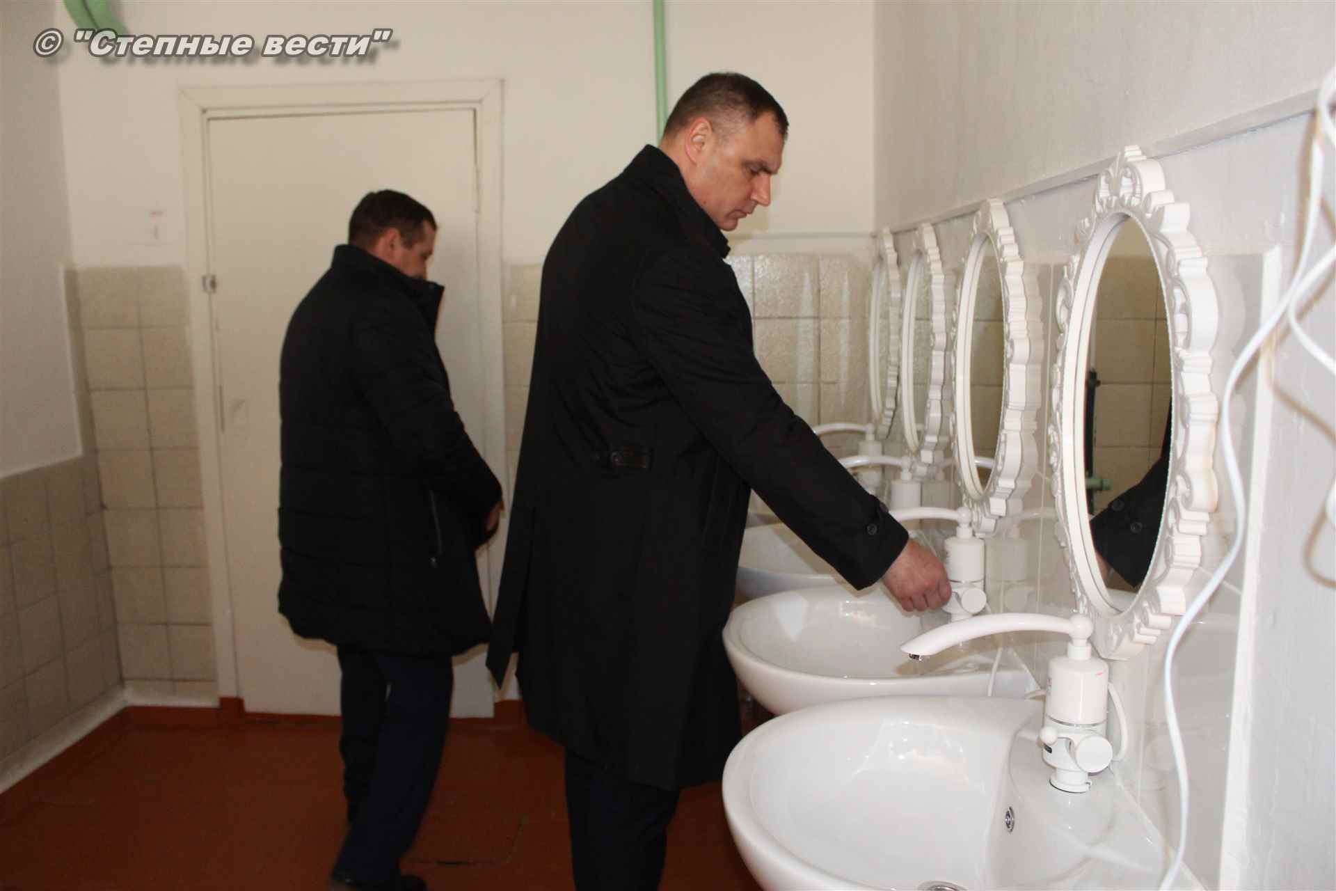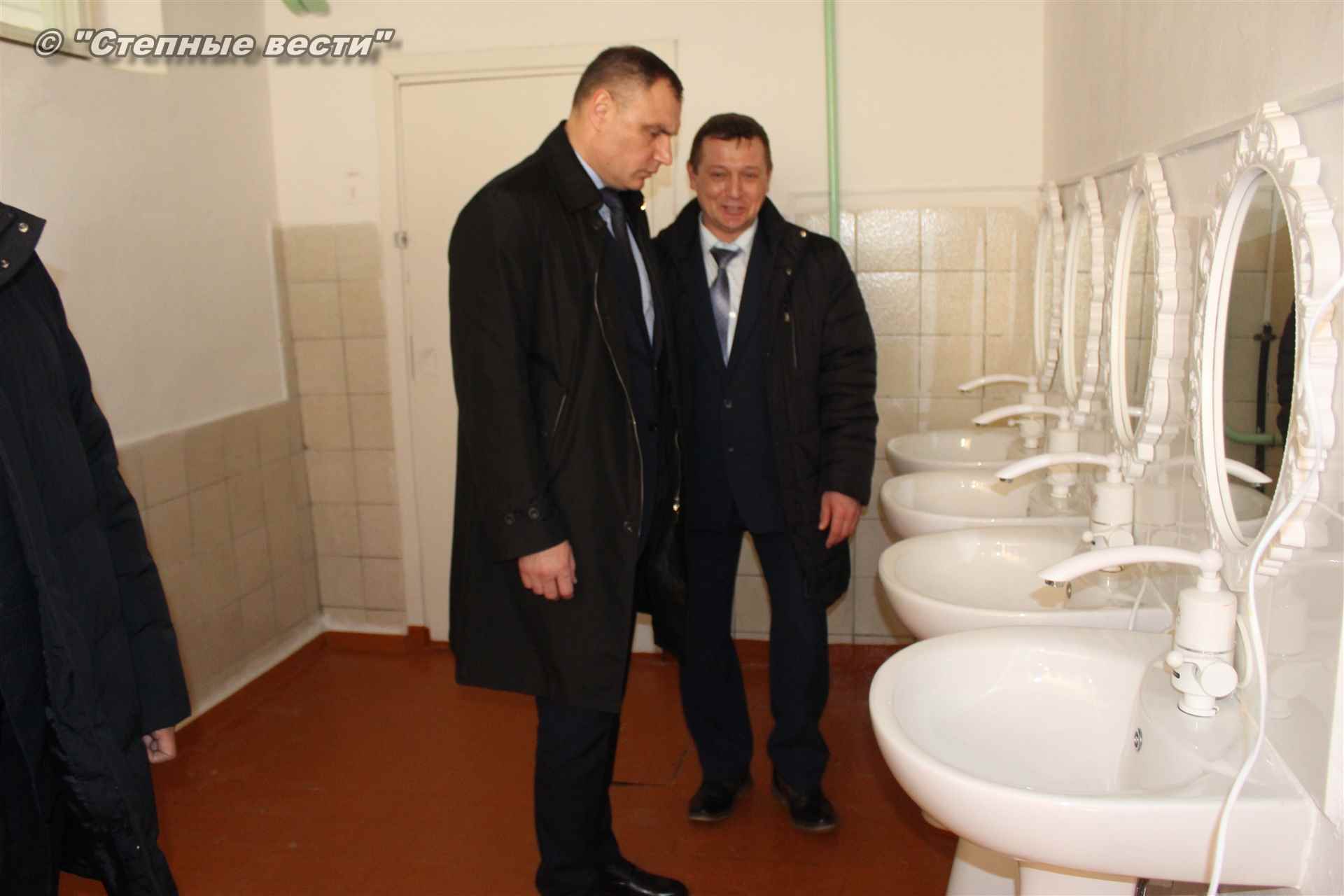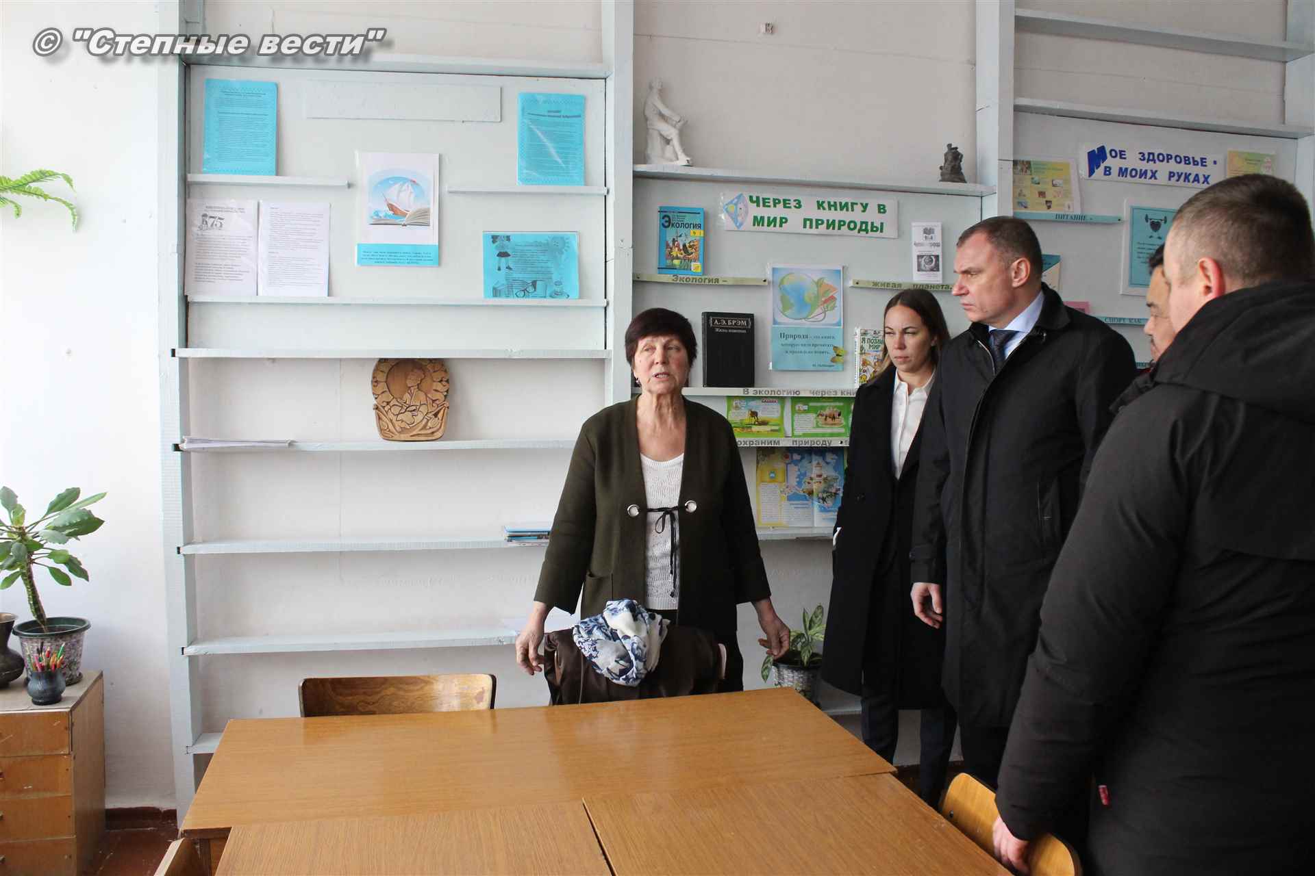 Далее члены правительства направились в школу.  Директор Евдокия Пустовойтова подробно рассказала о проведенном в 2019 году капремонте, во время которого заменили кровлю здания, окна, систему отопления, привели в порядок фасад. На это из резервного фонда Правительства РФ было направлено порядка 19 млн рублей.