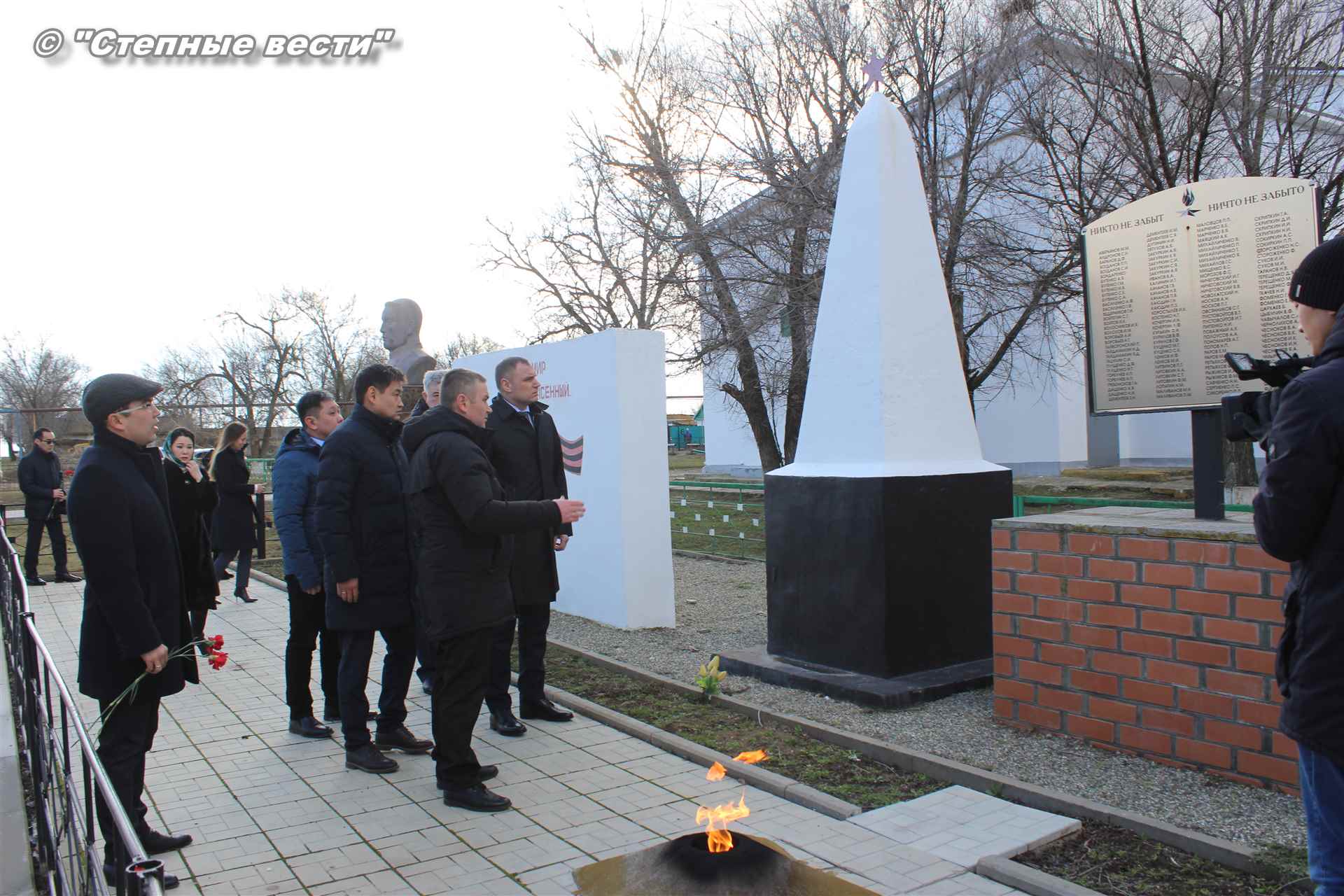 В селе Воробьевка члены республиканского кабинета министров возложили живые цветы к мемориалу, где увековечены имена Героев Социалистического труда, известных жителей села,  защитников Родины.