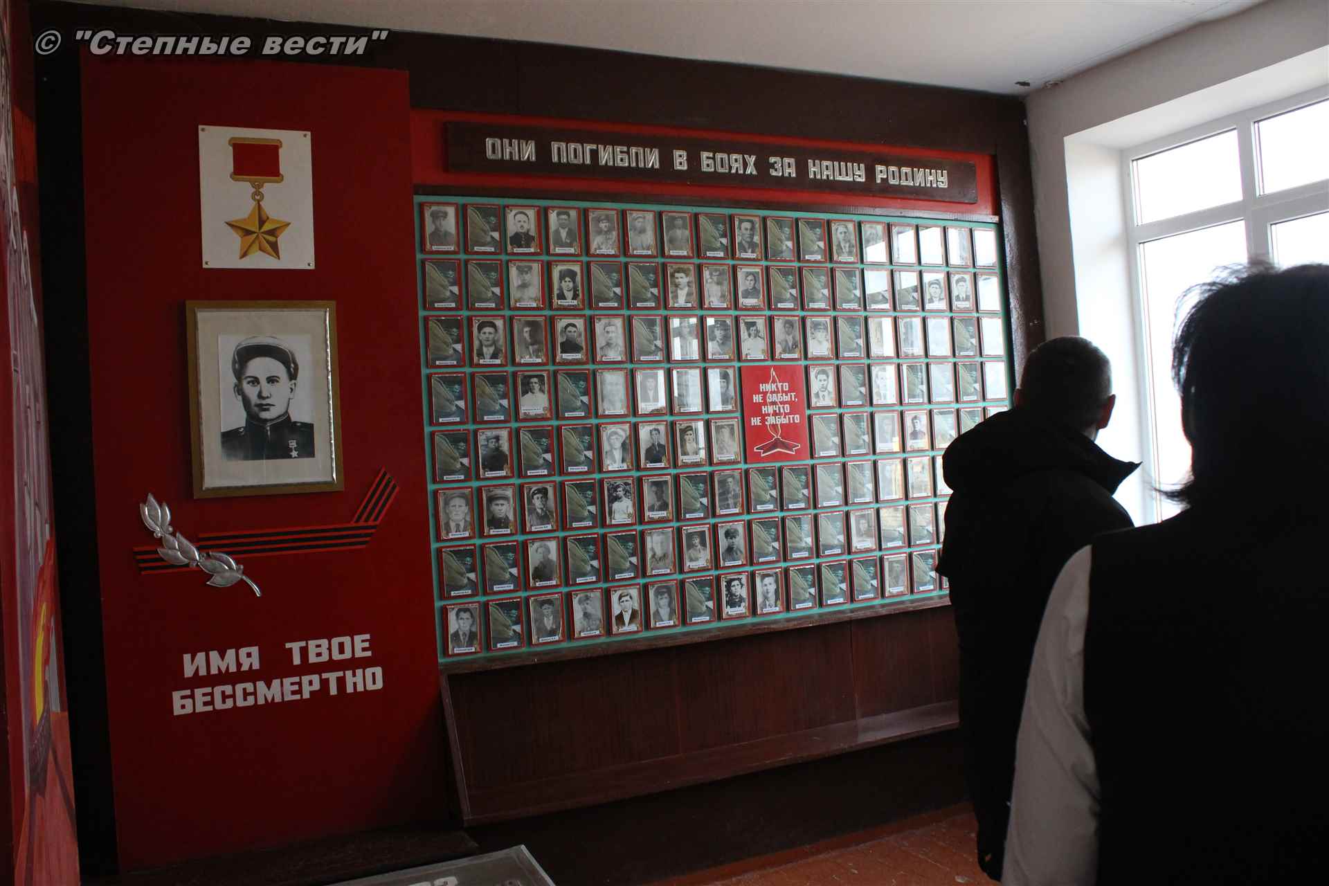 Юрию Зайцеву она показала школьный музей боевой и трудовой славы, в котором хранится немало ценных документов. Премьер РК осмотрел стенды «Наши односельчане – участники Великой Отечественной войны», ознакомился со  стендами, на которых размещены фотографии жителей села – фронтовиков, дошедших до Берлина, участников Гражданской войны, а также материалы о бойцах, погибших в боях во время Великой Отечественной войны  за нашу Родину.