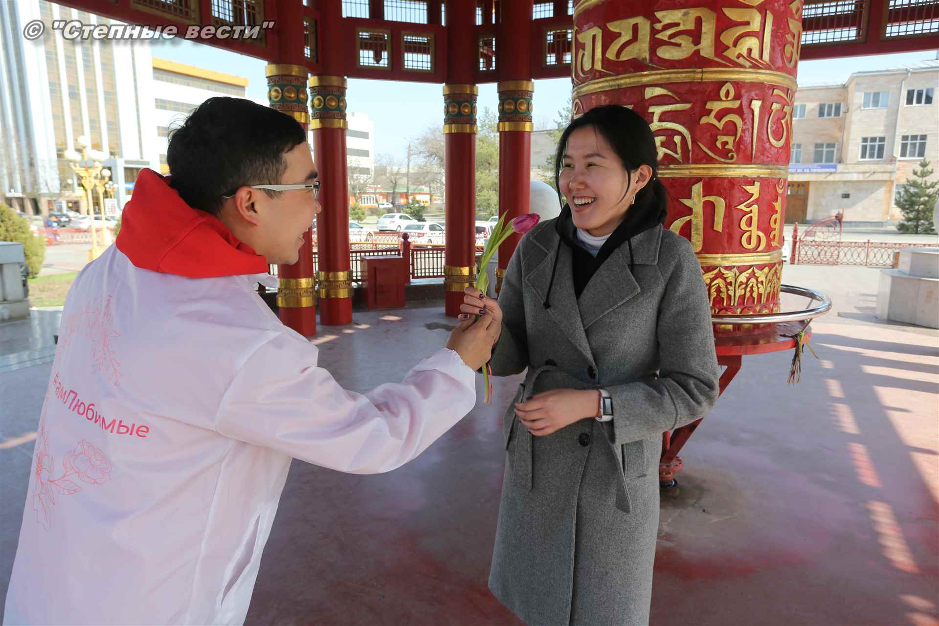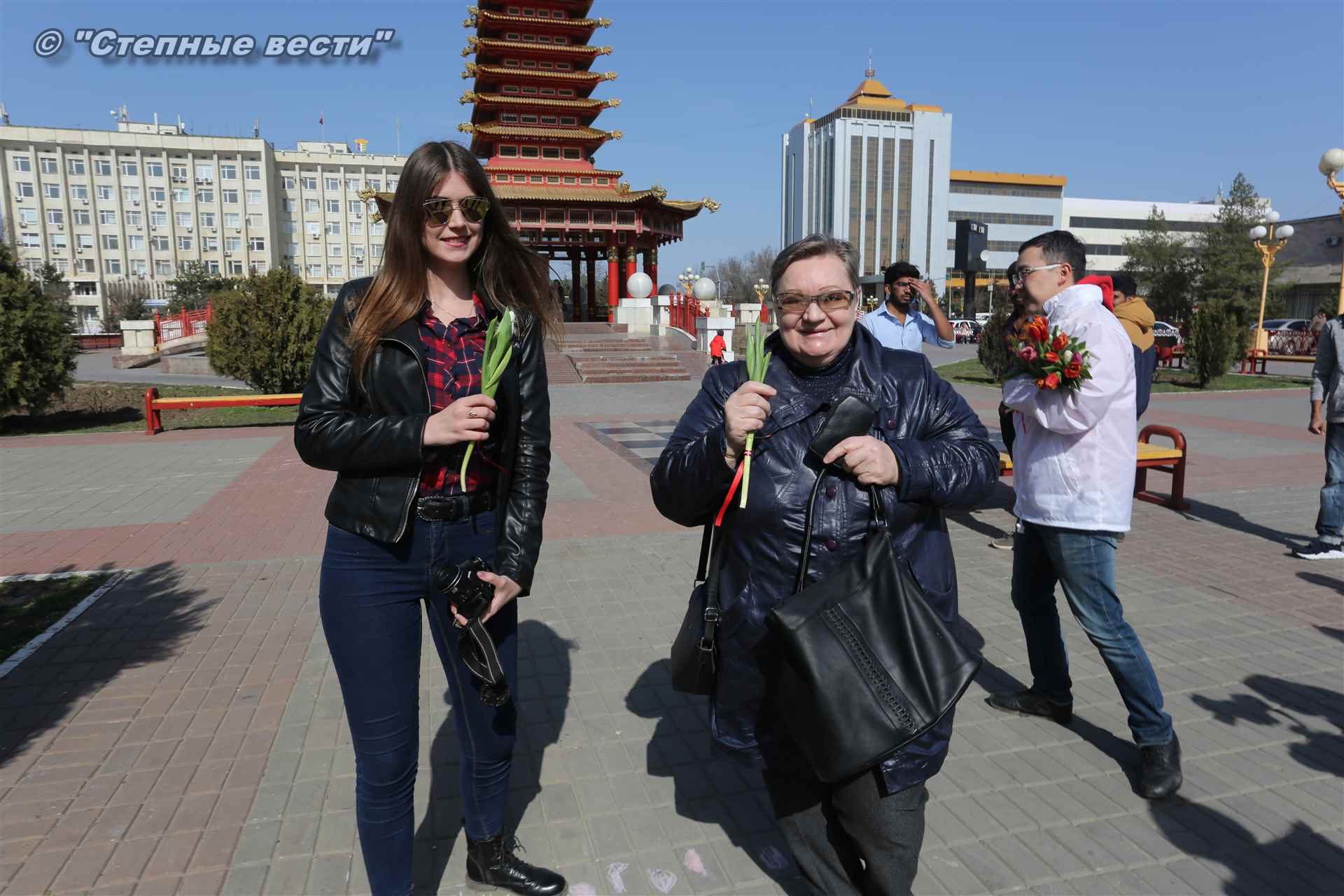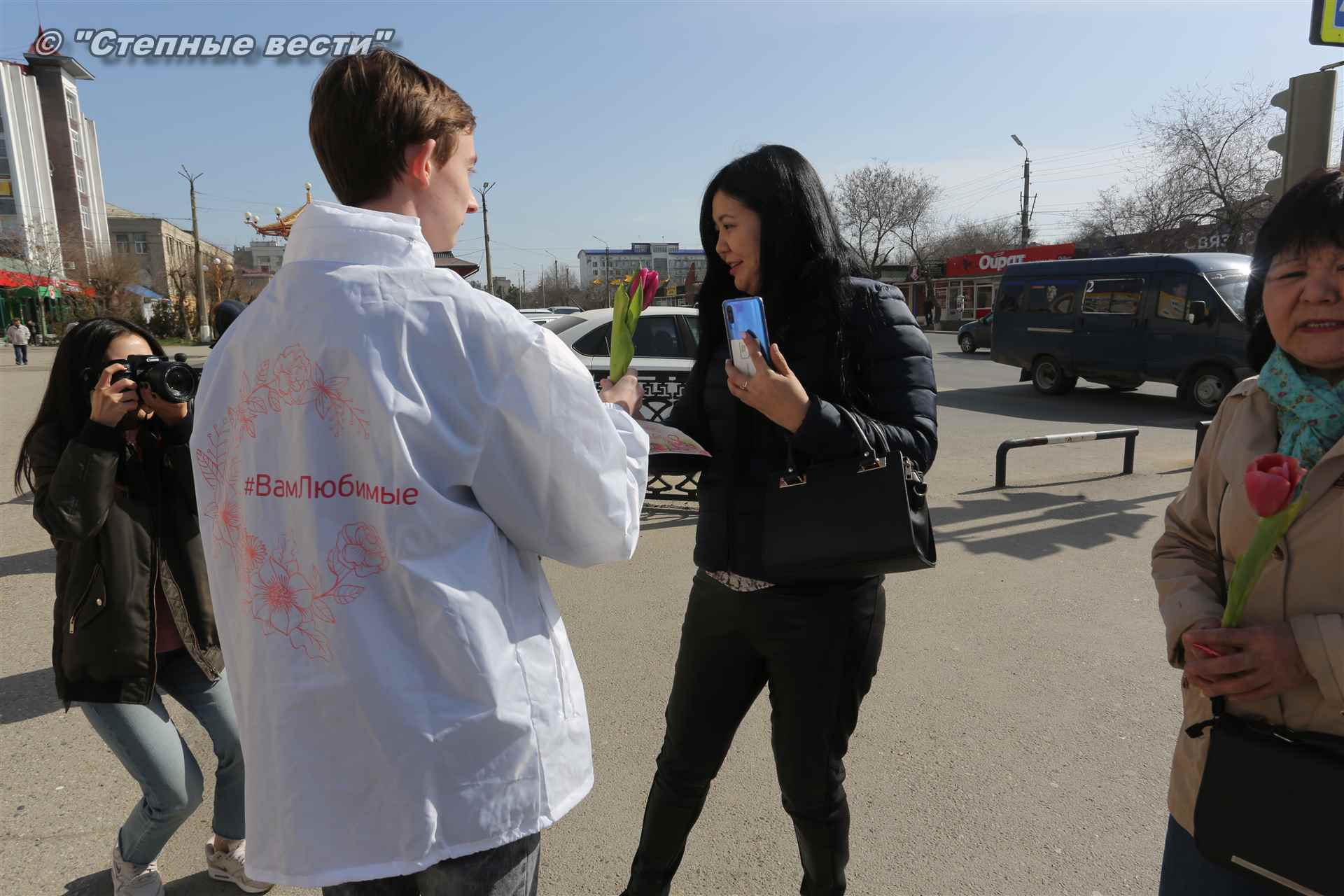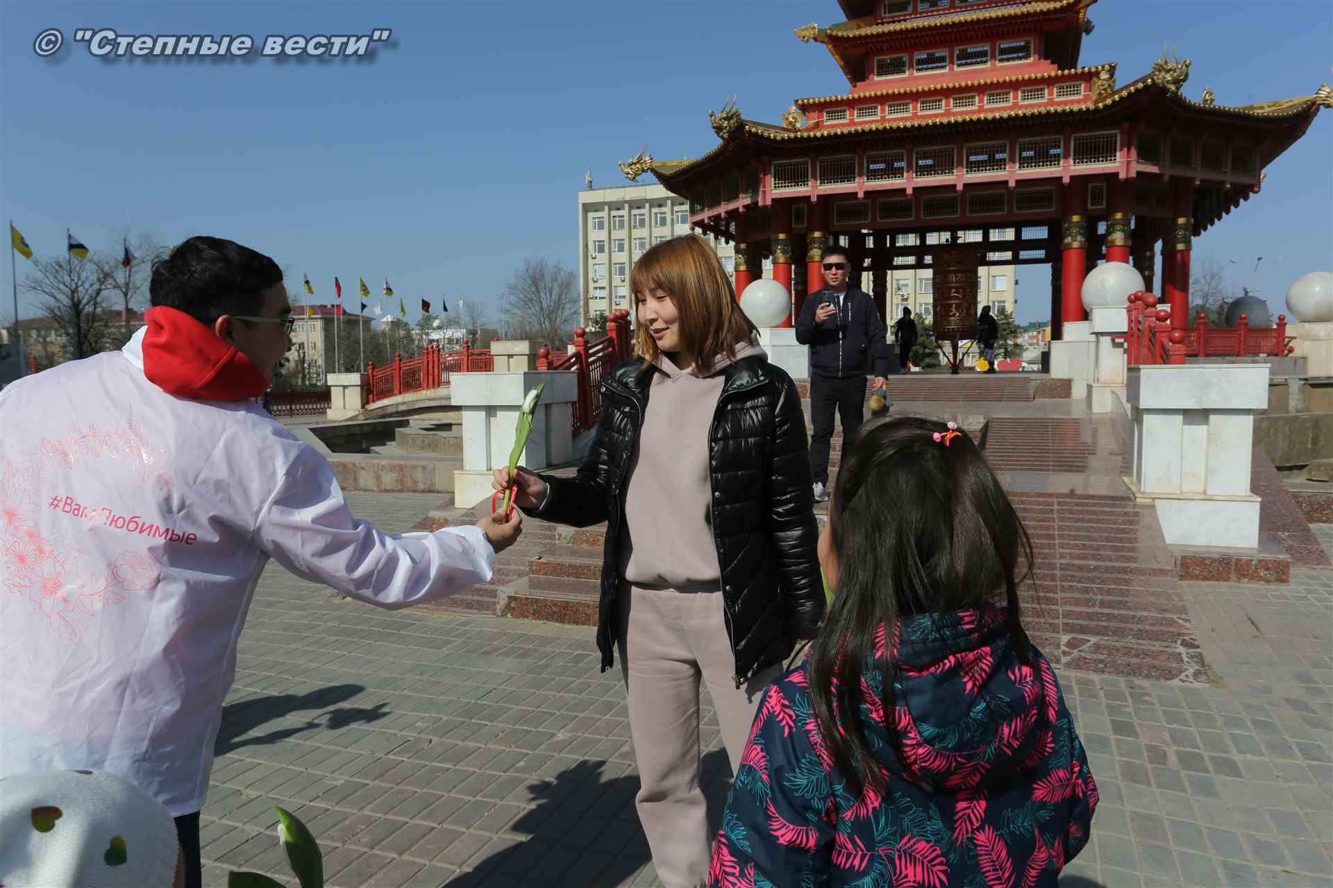 Две тысячи тюльпанов и поздравительные открытки сегодня преподнесли жительницам Калмыкии в Элисте в рамках ежегодной всероссийской акции «Вам, любимые».