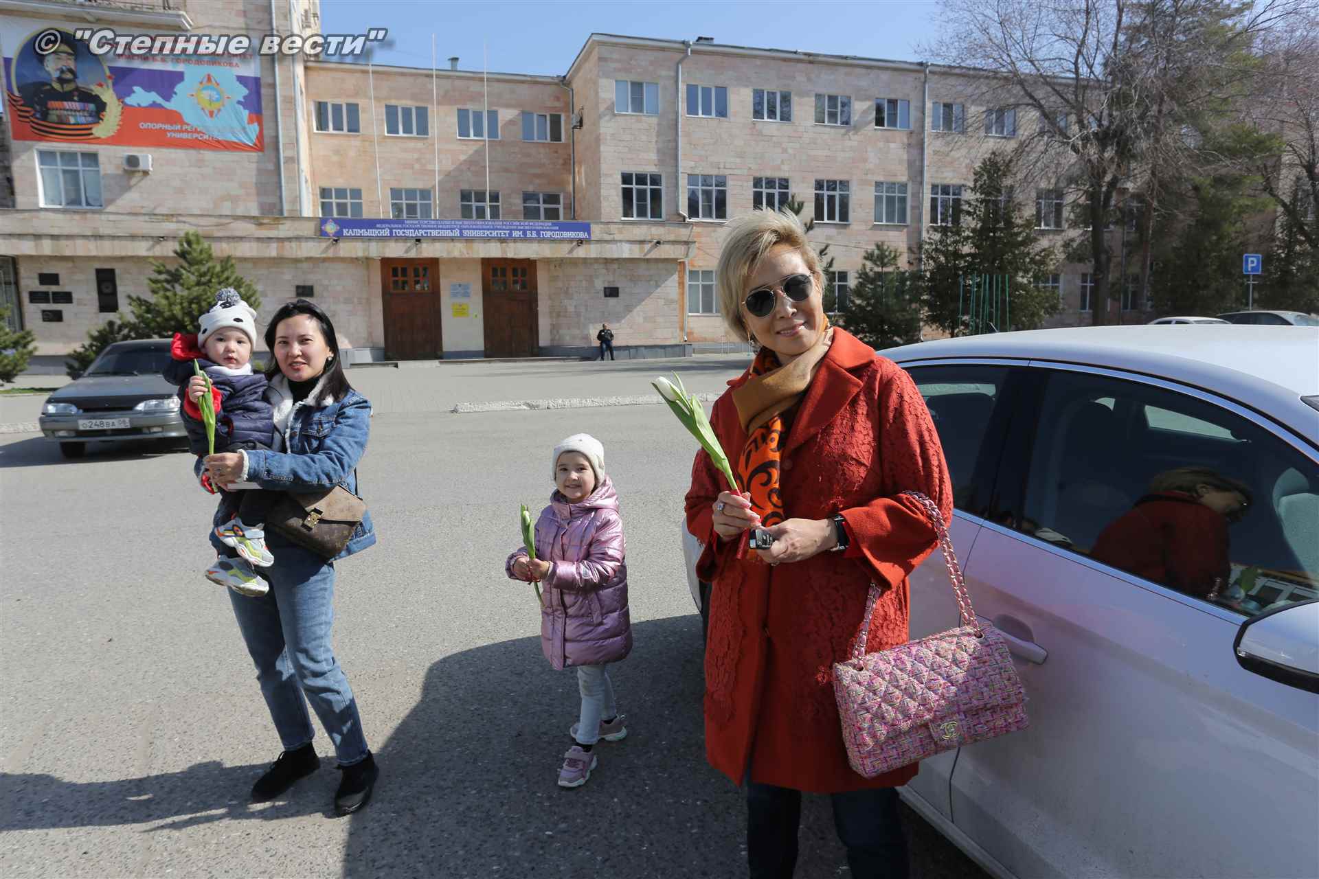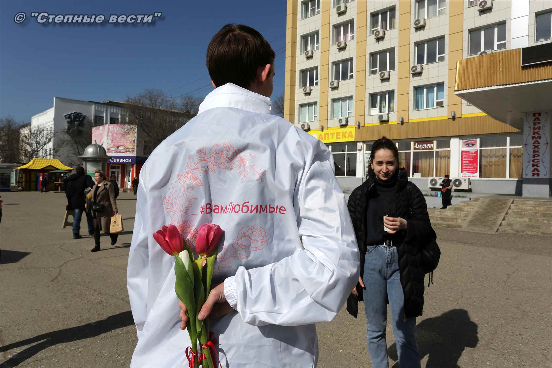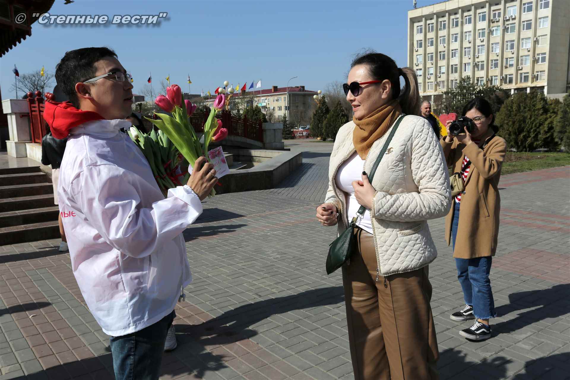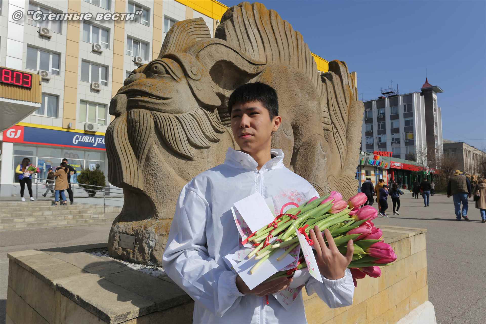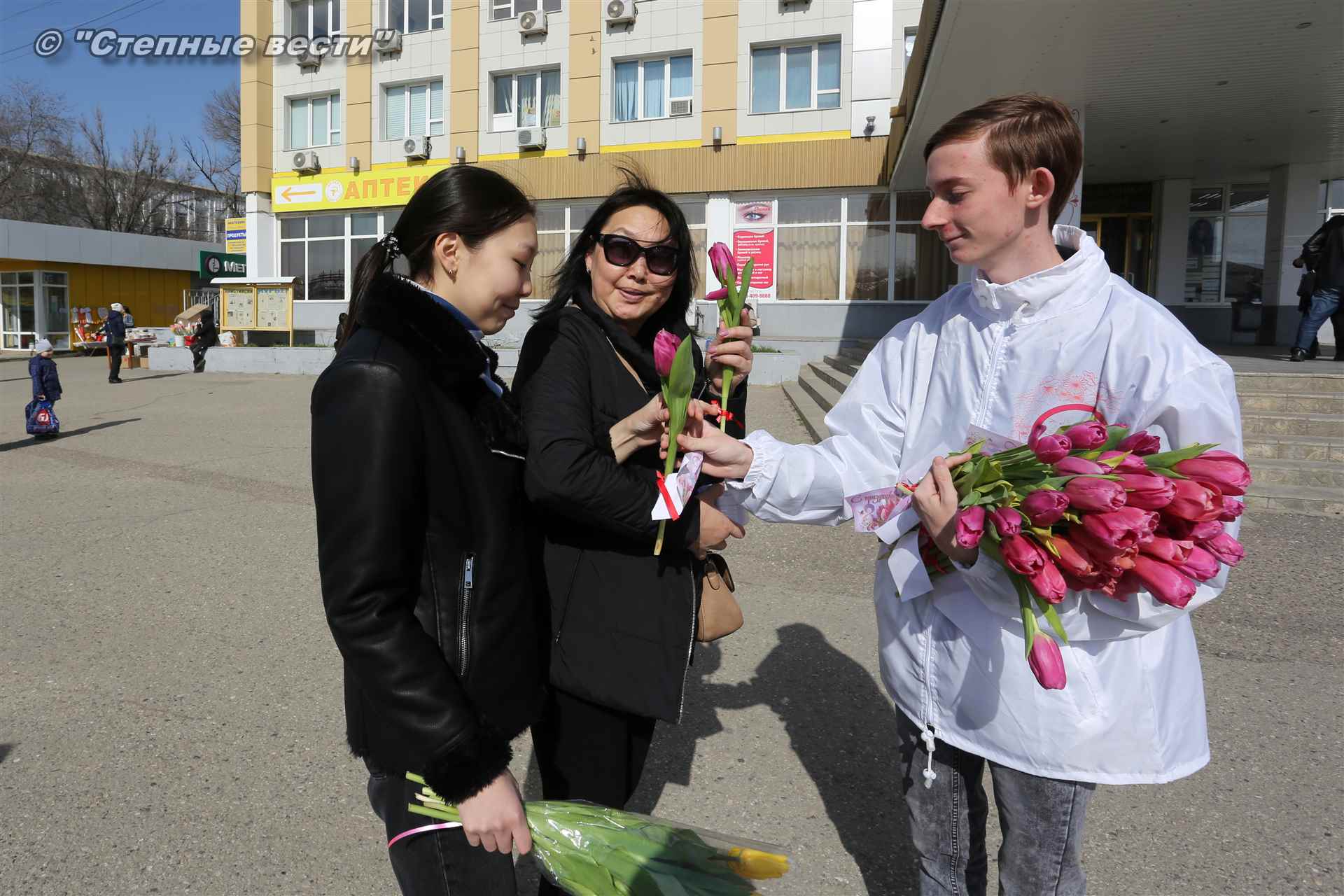 Две тысячи тюльпанов и поздравительные открытки сегодня преподнесли жительницам Калмыкии в Элисте в рамках ежегодной всероссийской акции «Вам, любимые».