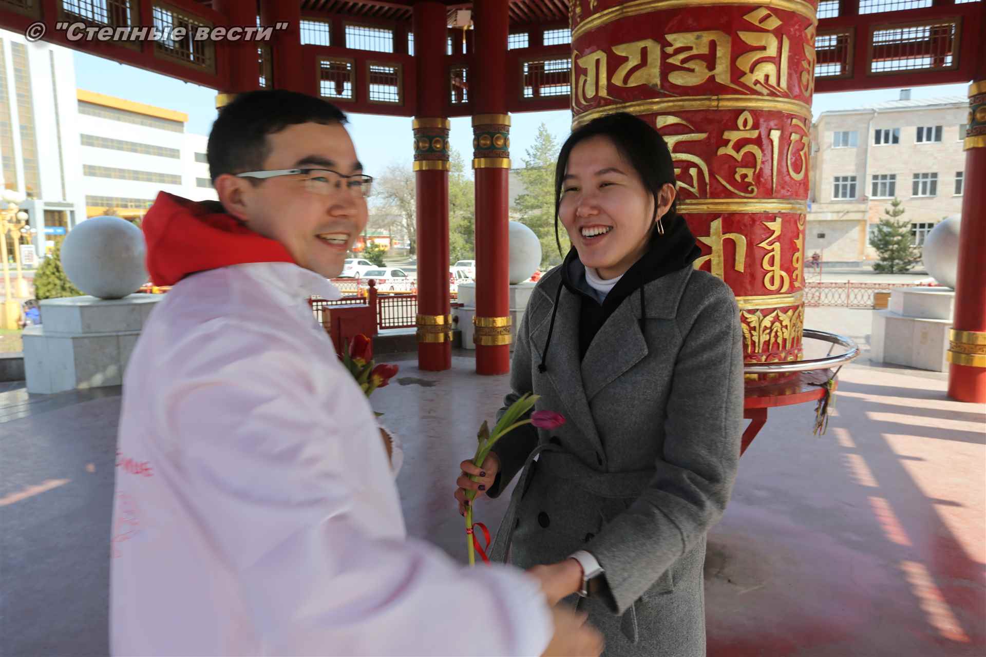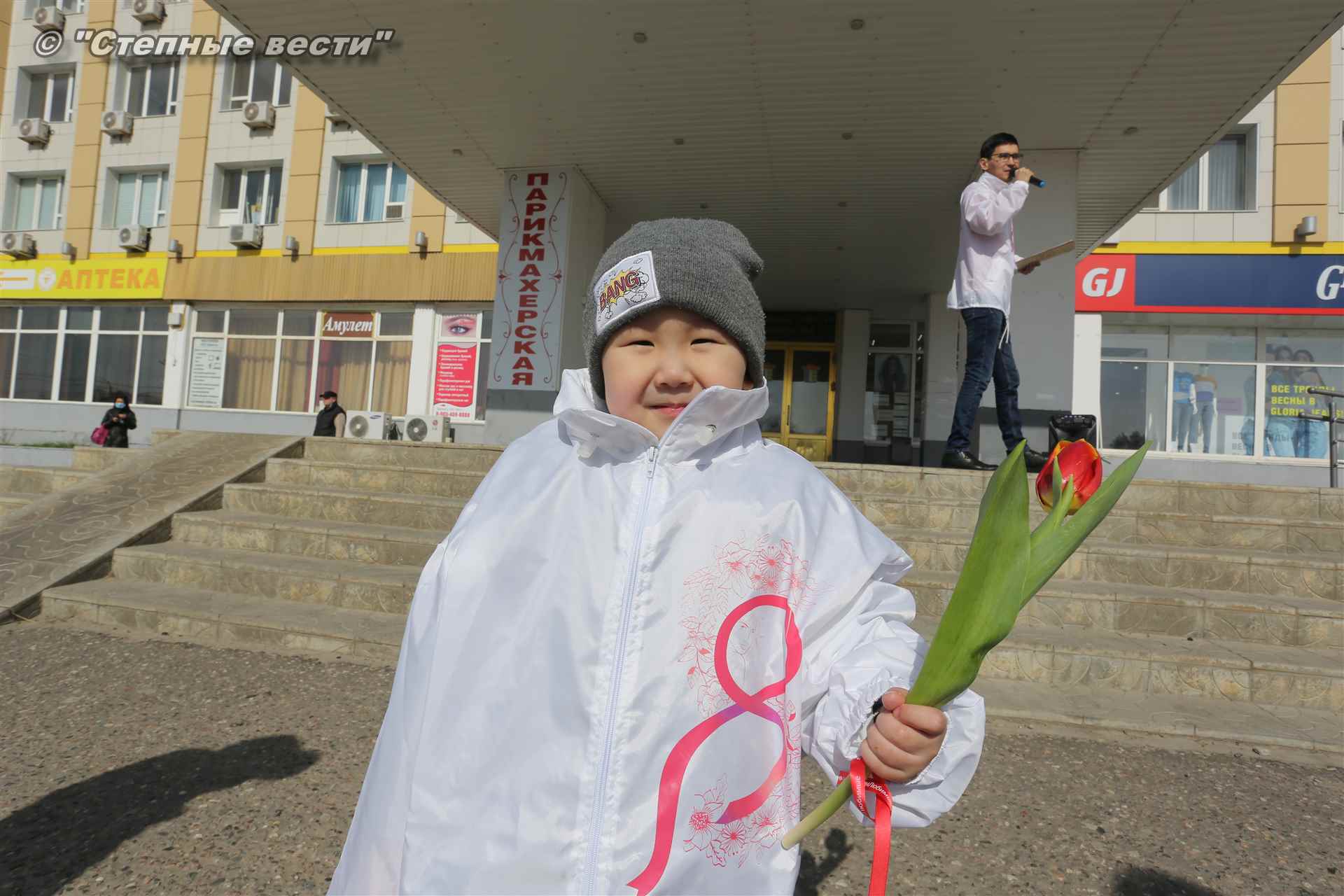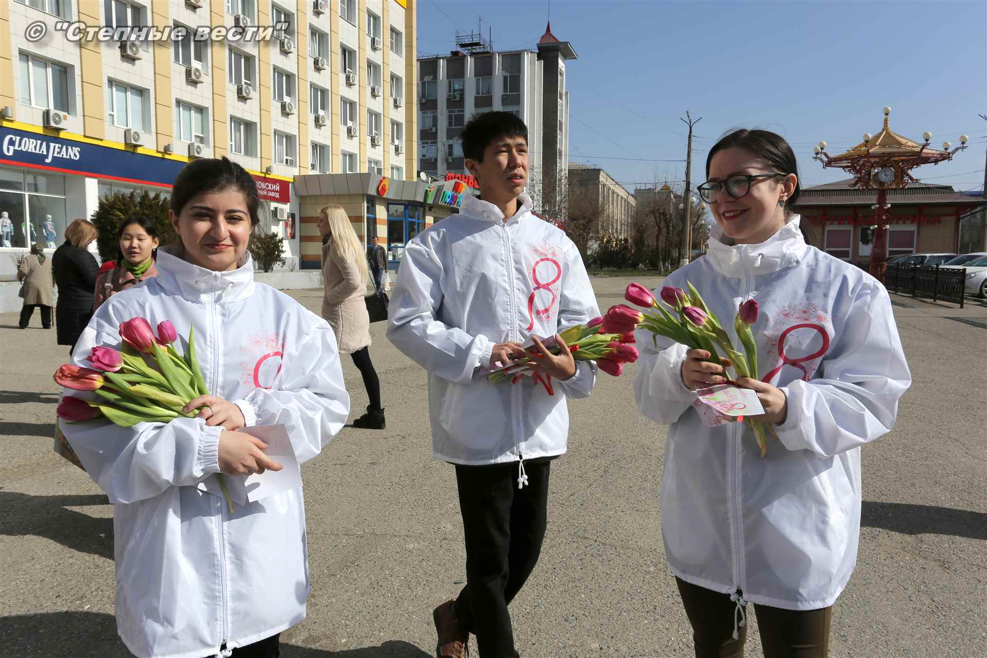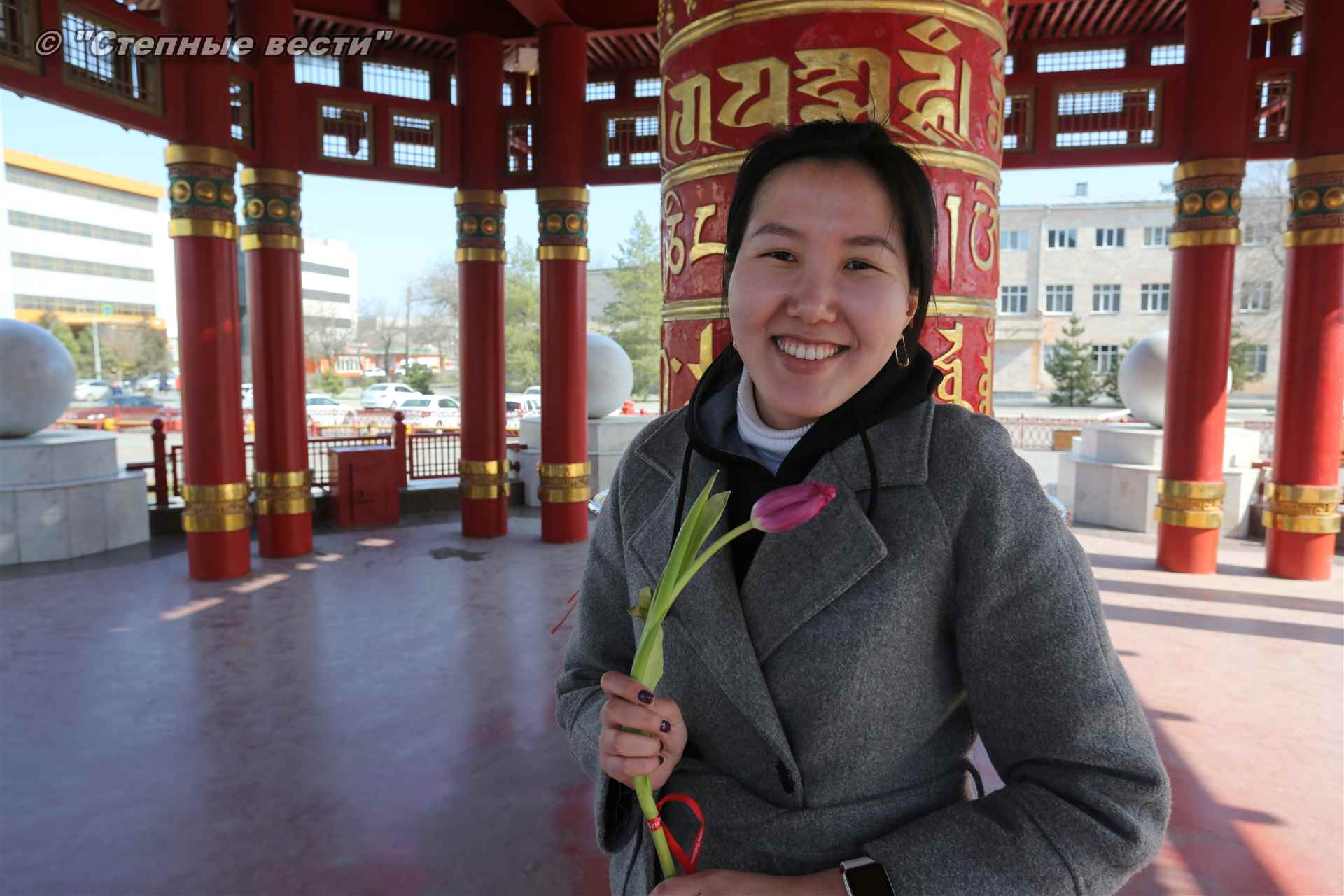 Неожиданные подарки – нежные весенние цветы – достались пассажиркам и кассирам маршрутных такси и городских автобусов на остановках возле Центрального хурула Калмыкии «Золотая обитель Будды Шакьямуни» и в самом центре столицы республики – у гостиницы «Элиста». Девочки, девушки, женщины и бабушки, которых поздравили с Международным женским днем, в ответ дарили свои улыбки и от души благодарили молодежь. По мнению бабушек, волонтеры, участвуя в народной акции, делая доброе дело в этот солнечный праздничный день, накопили буйн (добродетели, духовные заслуги).