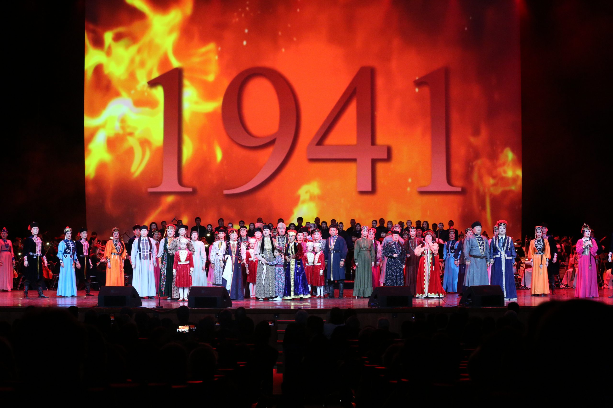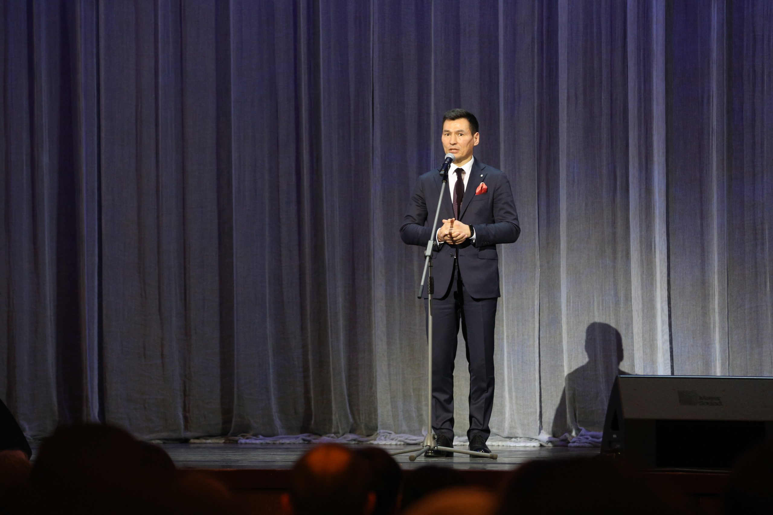 В своем выступлении на праздничном вечере глава республики Бату Хасиков отметил, что все присутствующие в зале могут окунуться в атмосферу того непростого времени и как в калейдоскопе прожить эти сто лет нашей истории.
