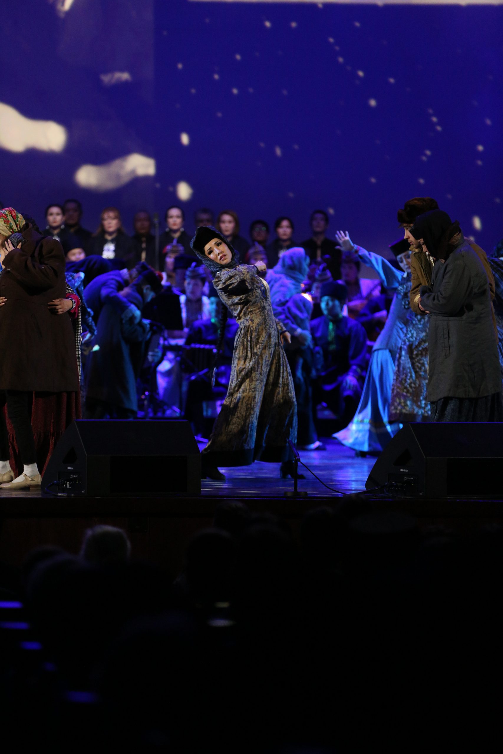 Без преувеличения, в этот вечер состоялся бенефис каждого из них, ибо для любого артиста выход на самую престижную сцену страны, в которой он живет и творит, — несомненно, главная роль в творческой жизни. И потому все они по-особому блистали! Чего только стоил баттл художественных руководителей и дирижеров двух оркестров Мергена Настинова и Савра Катаева, исполнивших соответственно на скрипке и домбре попурри из классики рока и калмыцких наигрышей.